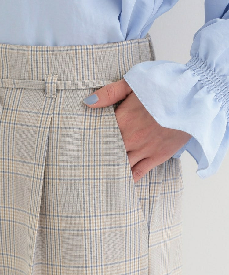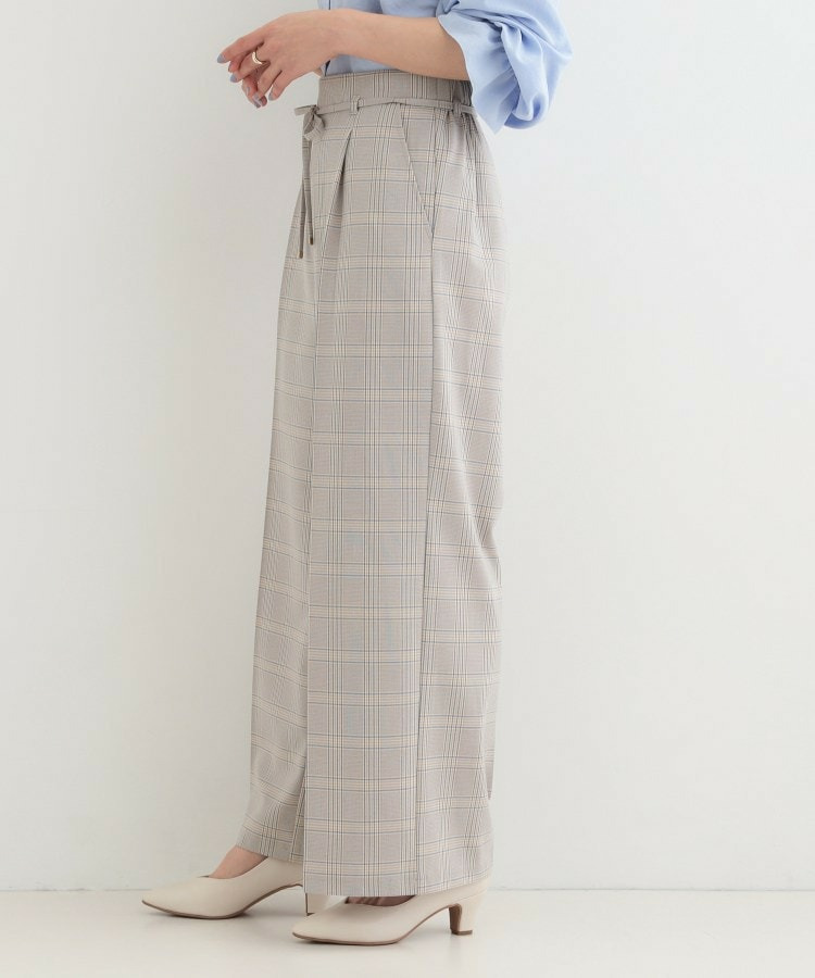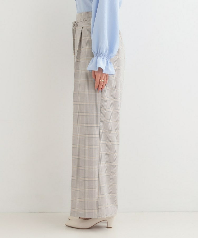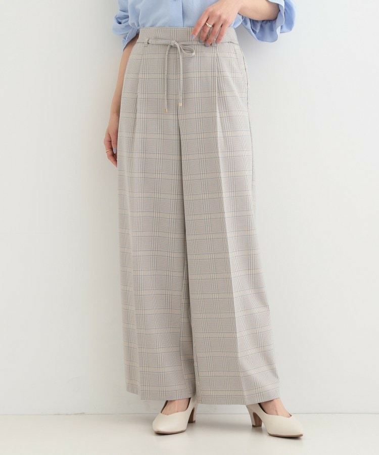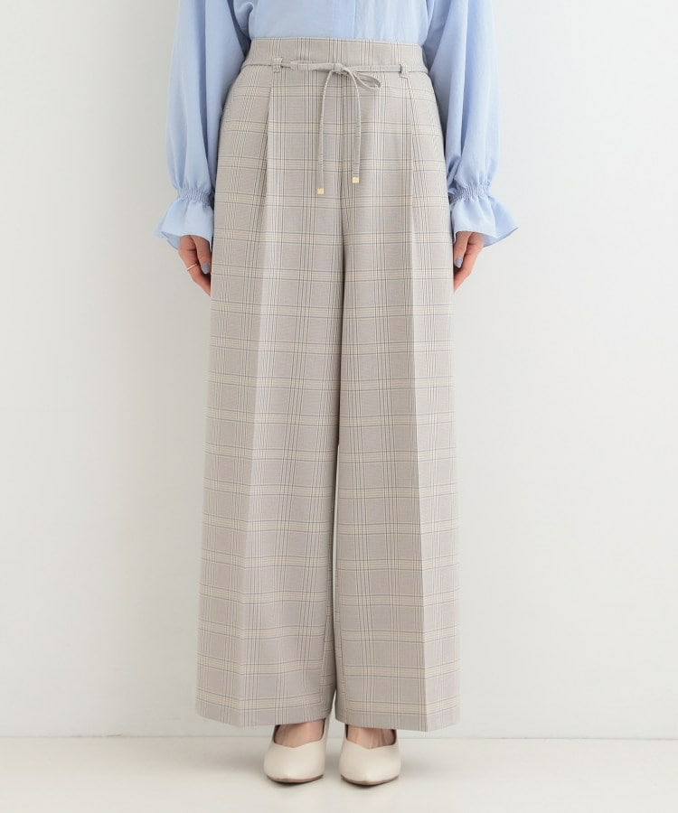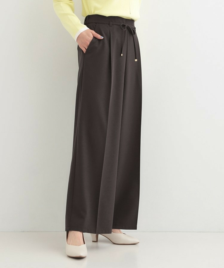 イージーパンツながら、ウエストのリボンディティールとセンタープレスがきちんと見えするデザイン。