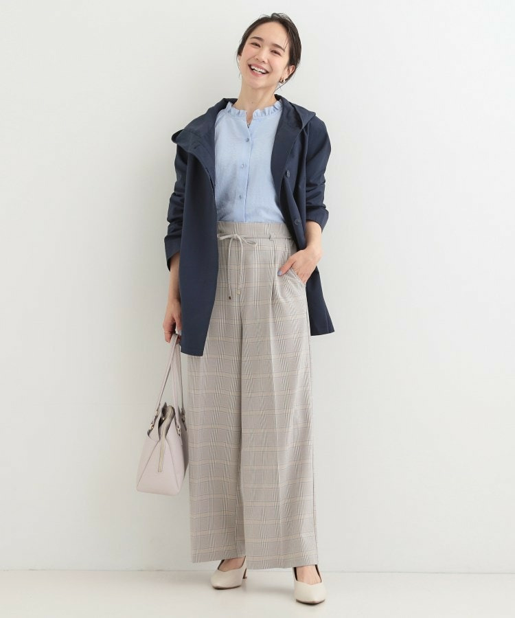 イージーパンツながら、ウエストのリボンディティールとセンタープレスがきちんと見えするデザイン。