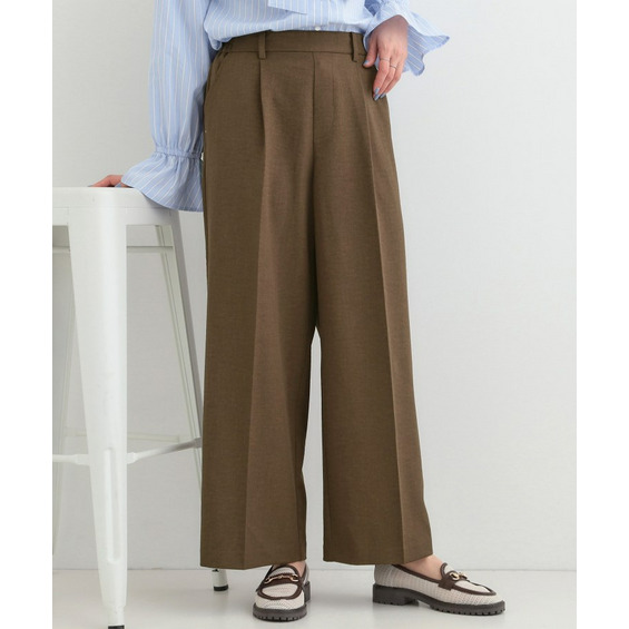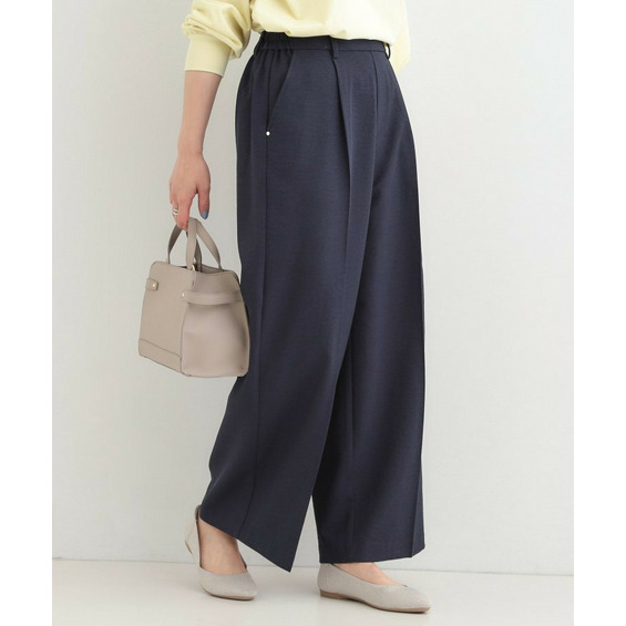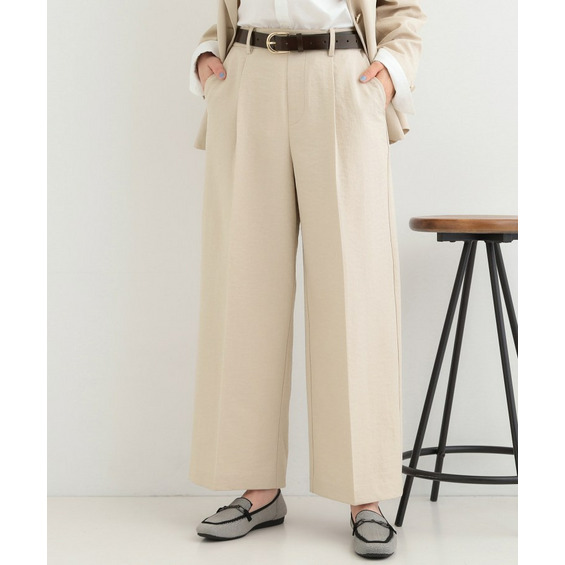 まっすぐなシルエットが脚のラインをきれいに見せてくれて、タックが入っているので穿きやすく、スタイリッシュな印象のワイドパンツ。