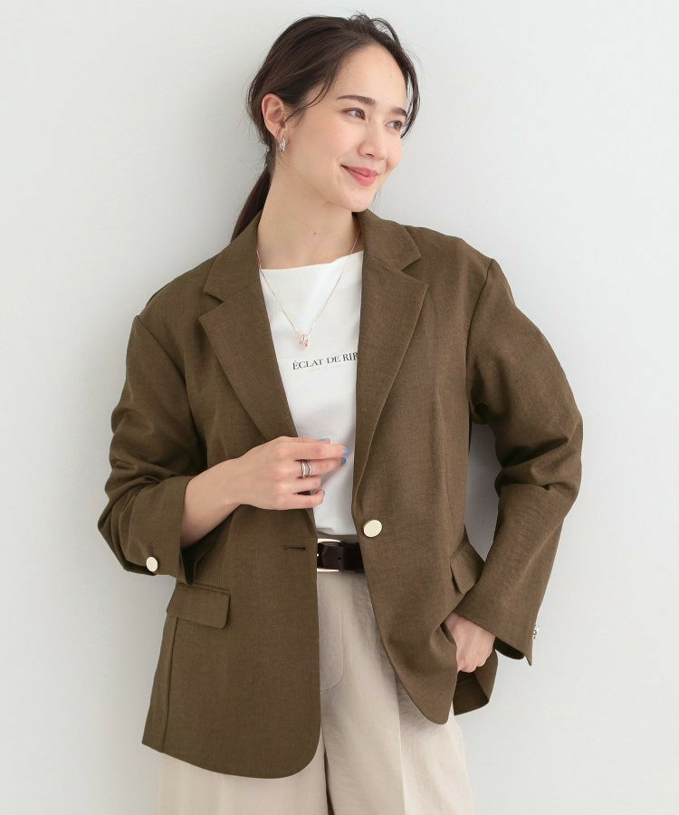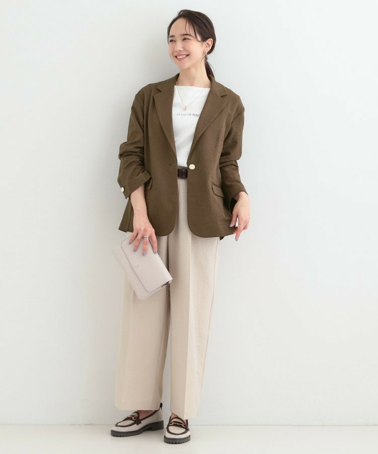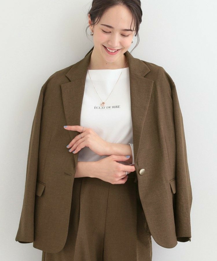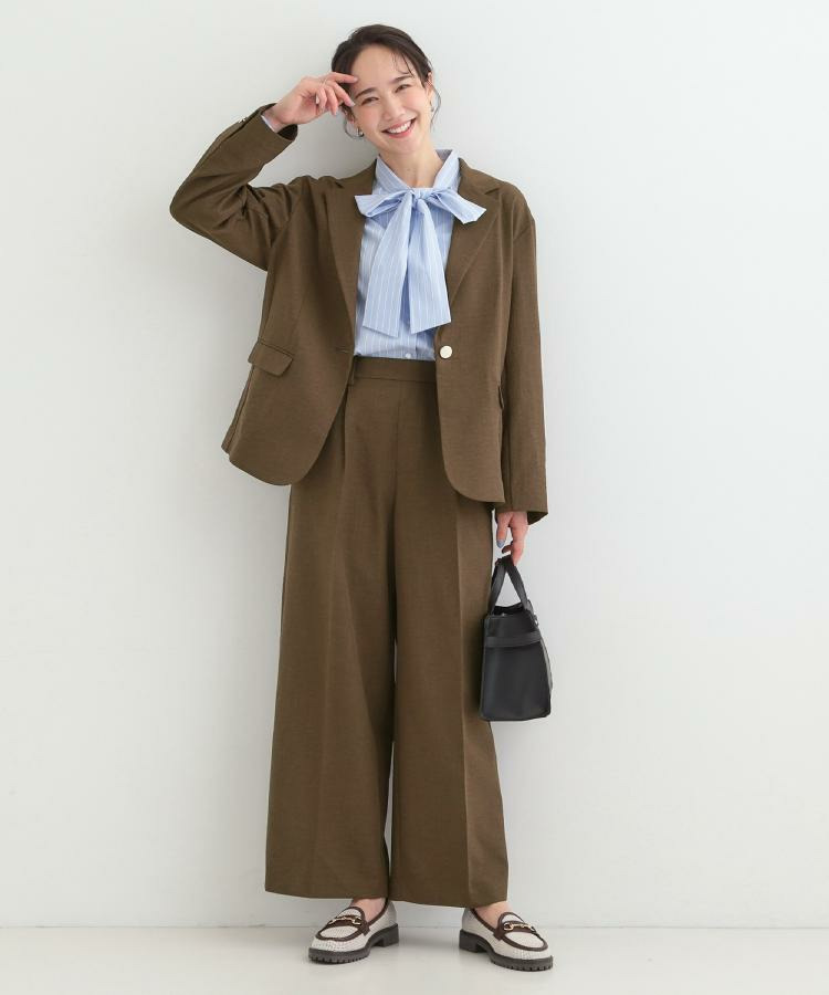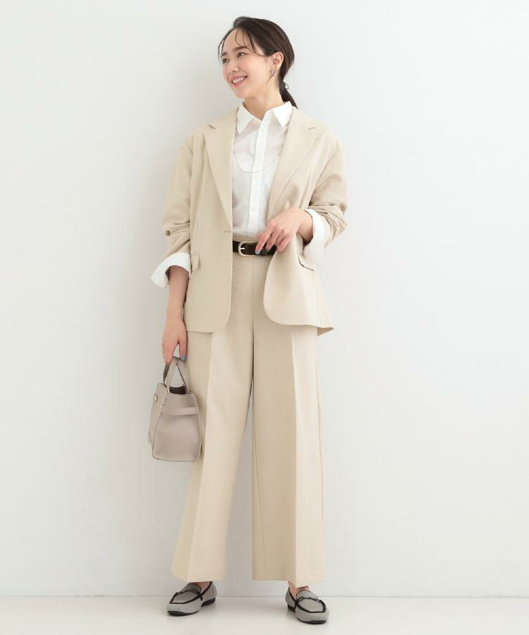 同素材のパンツと合わせてセットアップでの着こなしや、ブラウスの上に羽織っていただくとオフィスカジュアルにマッチ。