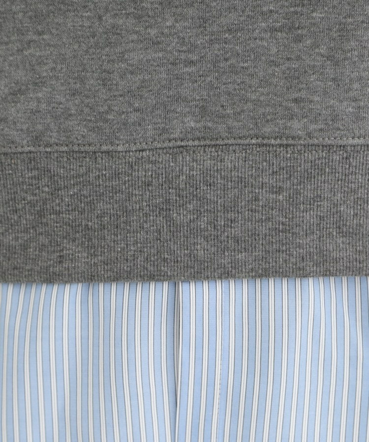 スウェット生地とシャツを一体化させたレイヤード風デザイン。