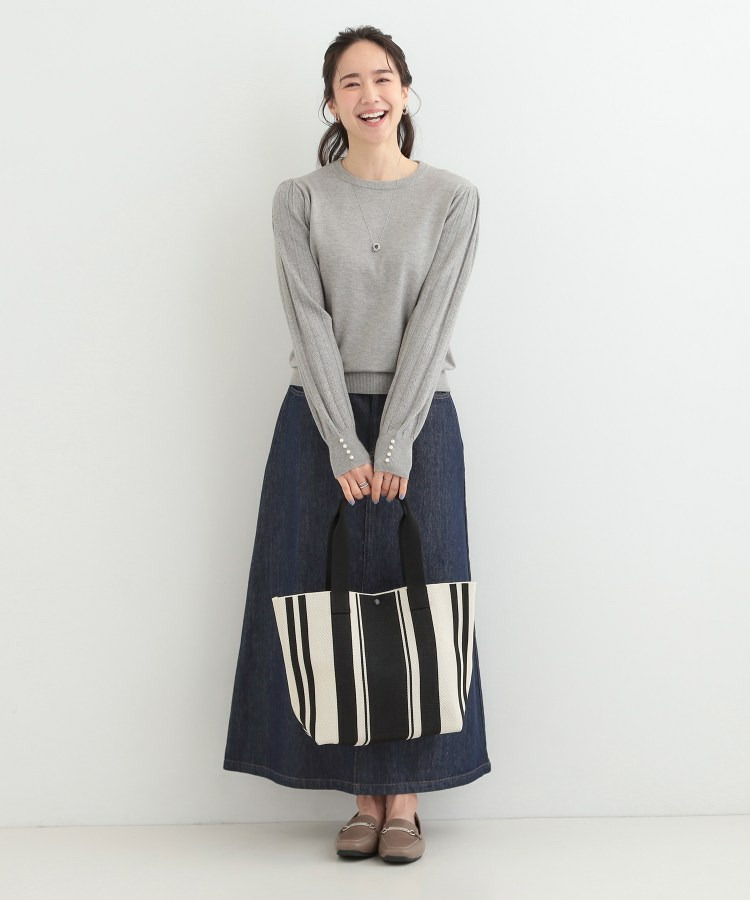 本体をニットで仕上げているので、やわらかくカジュアルな雰囲気に仕上げました。