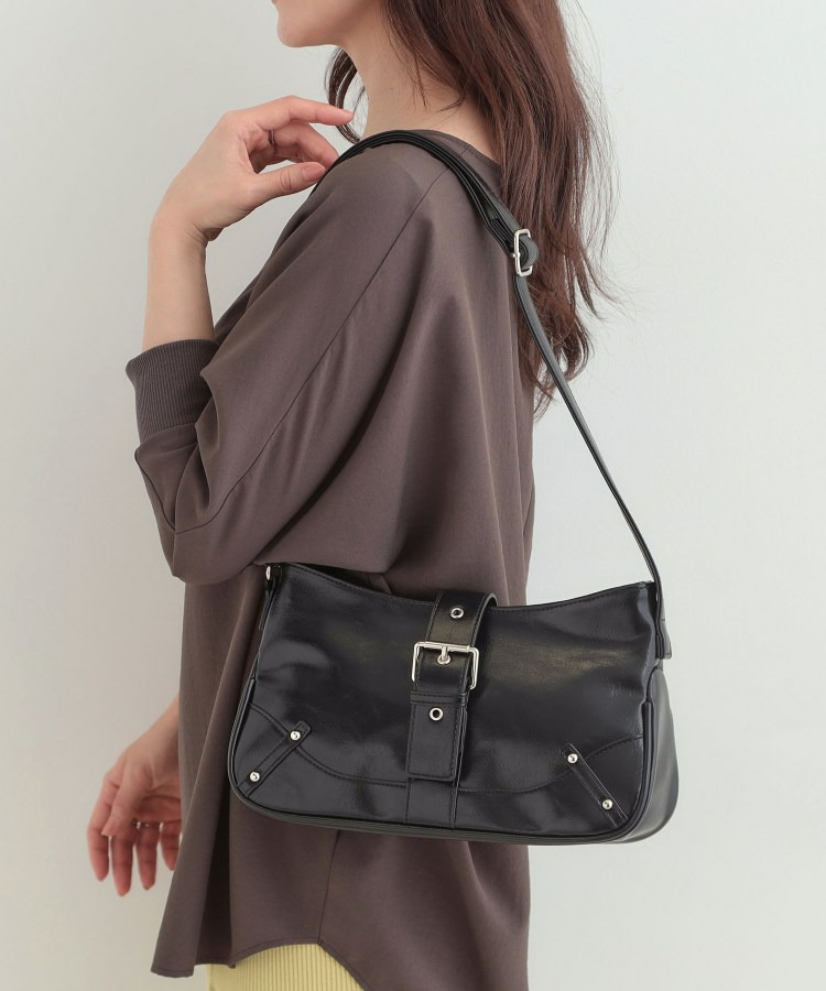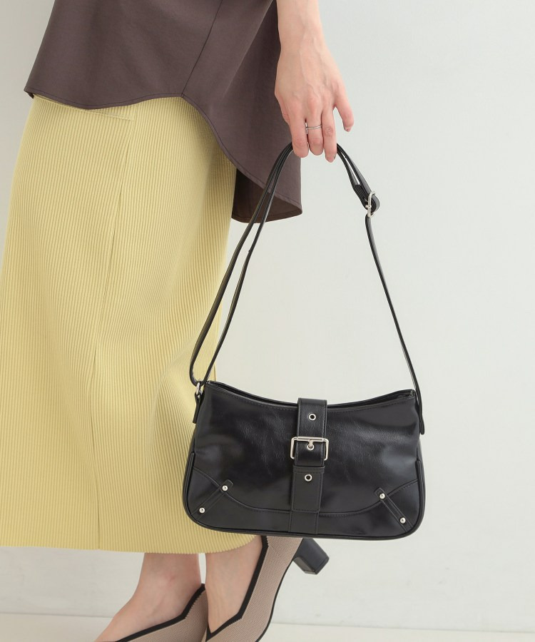 ベルトのデザインがポイントでトレンド感のあるショルダーバッグです。