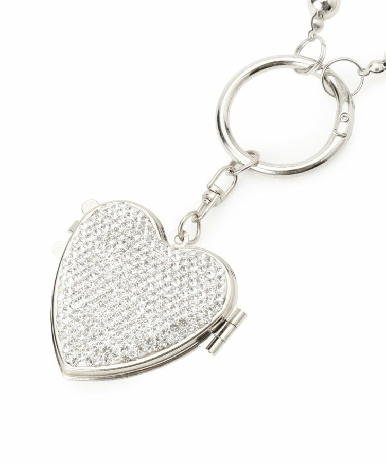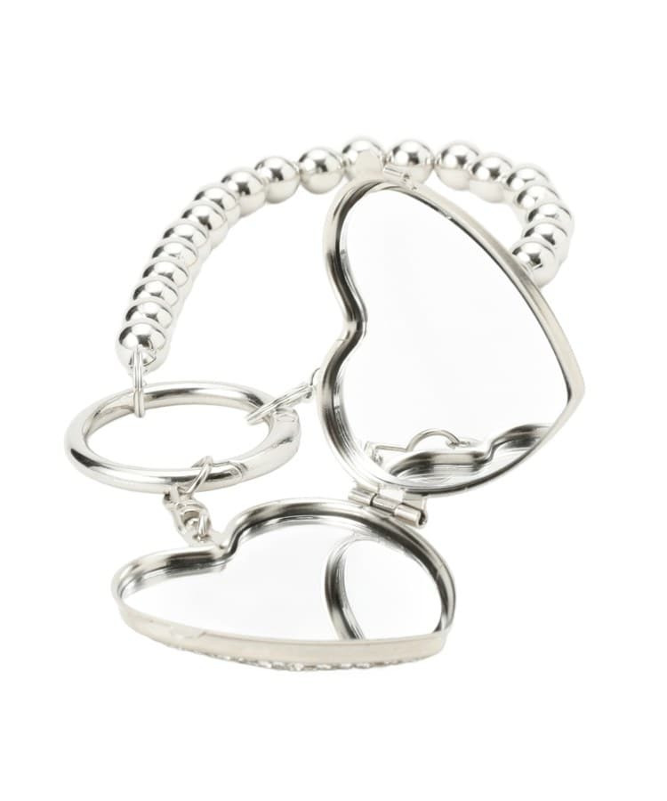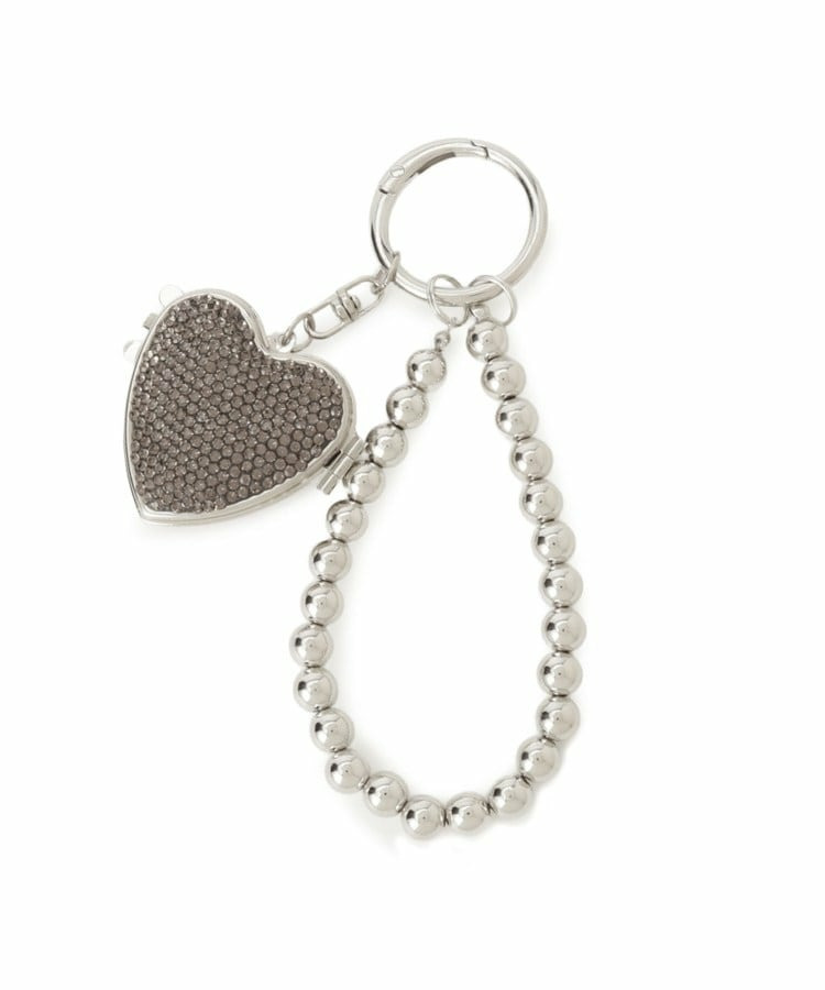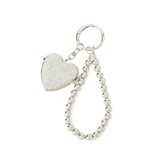 ハート型チャームは表面に小粒ラインストーンを敷き詰めたパヴェ仕上げで光を受けてきらめきます。