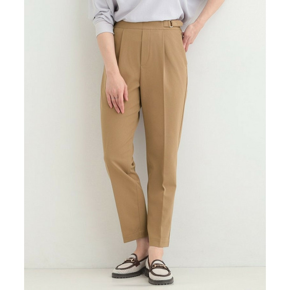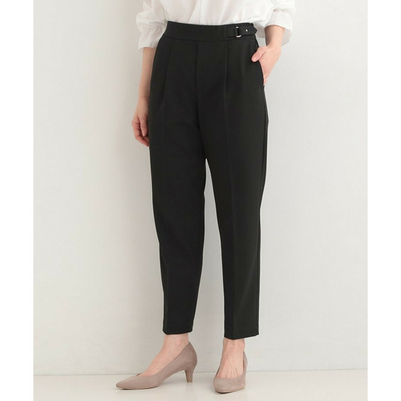 ウエストのダブルベルトデザインがポイントのテーパードパンツ。