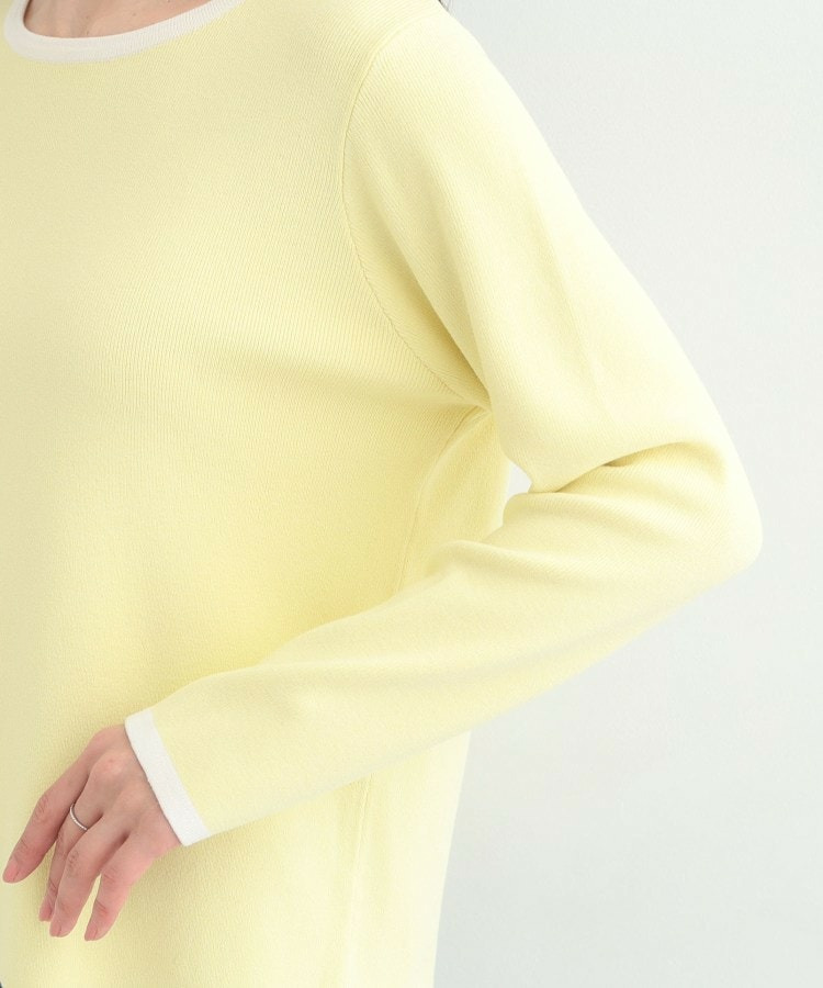 【洗濯機可/S-LL/アンサンブル可】すっきりと好印象 配色クルーネックニット
