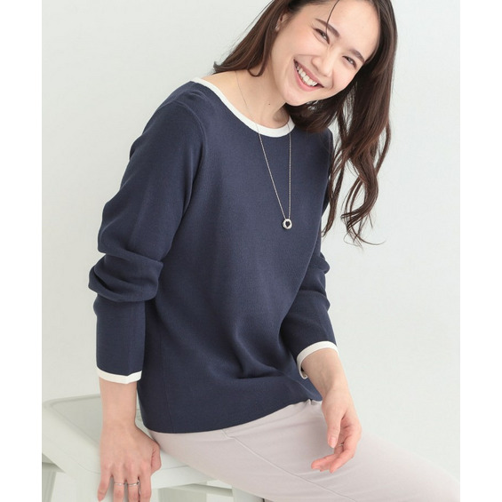 毛羽立ちにくく、すっきりした表情でシルエットがきれいに見えるニット。