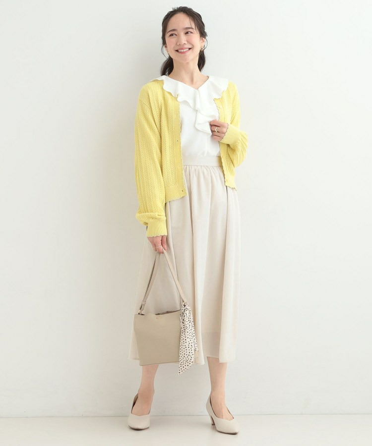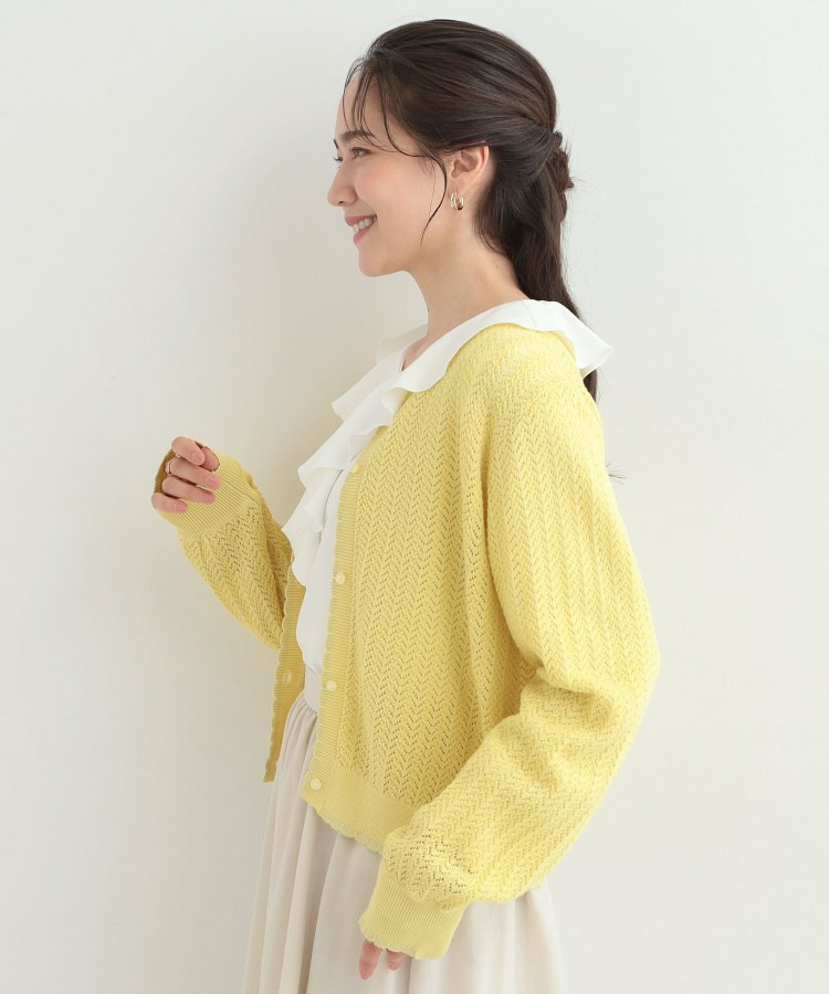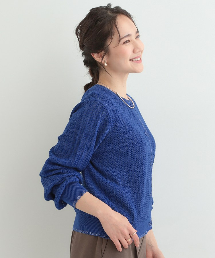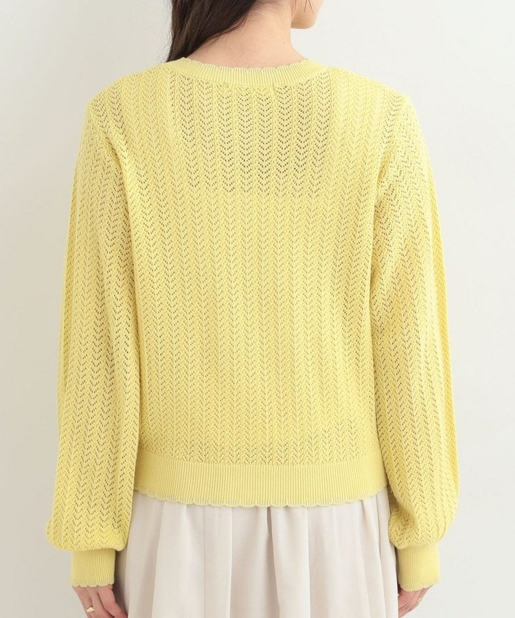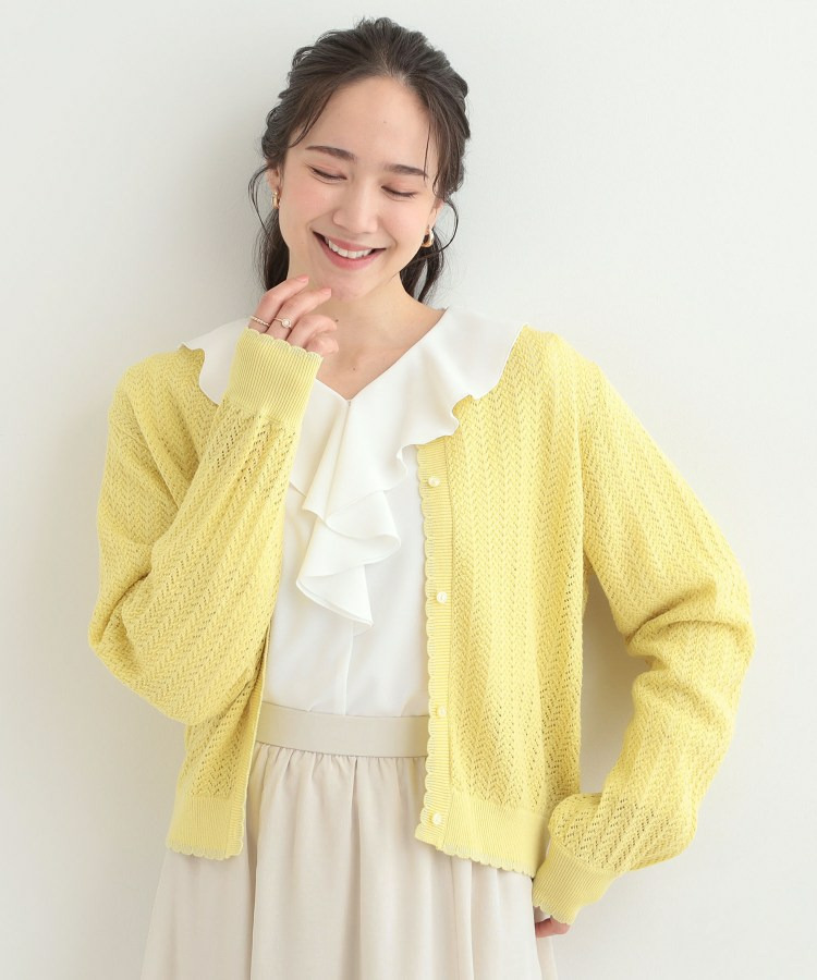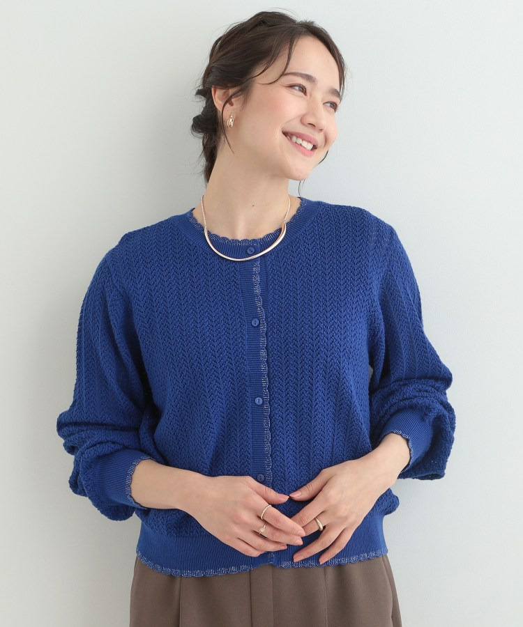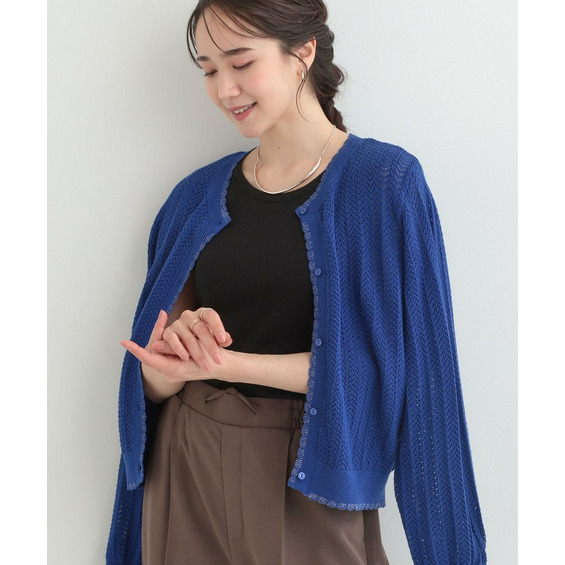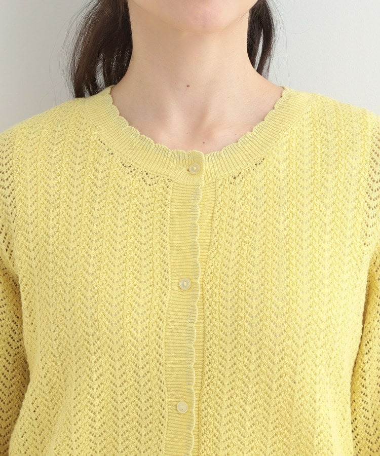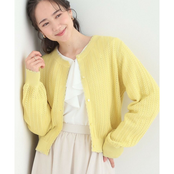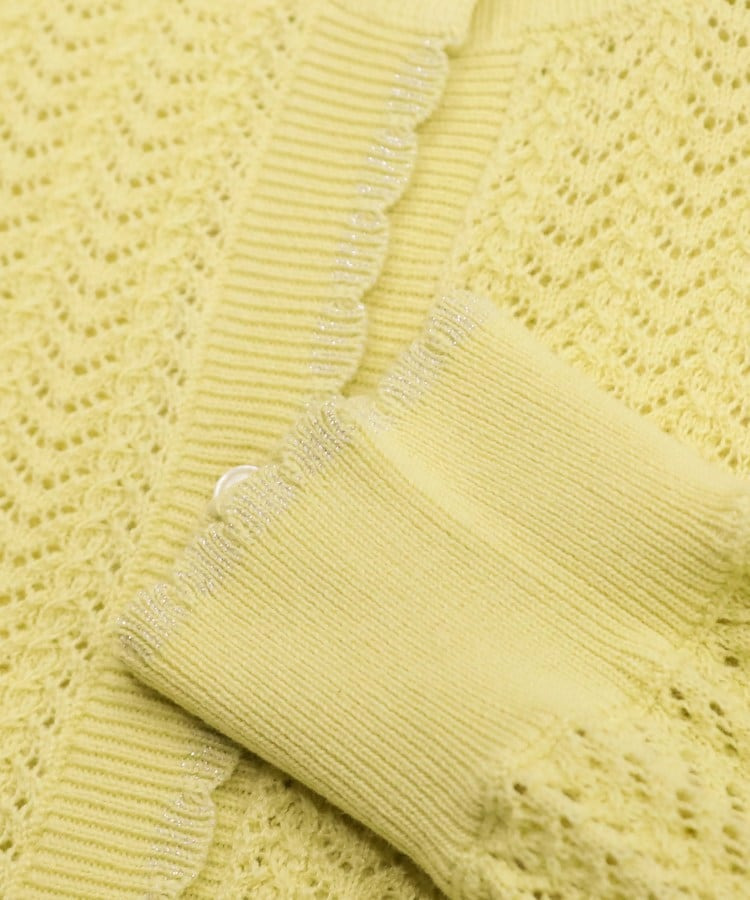 編み端のスカラップ+ラメが上品なニットカーディガン。