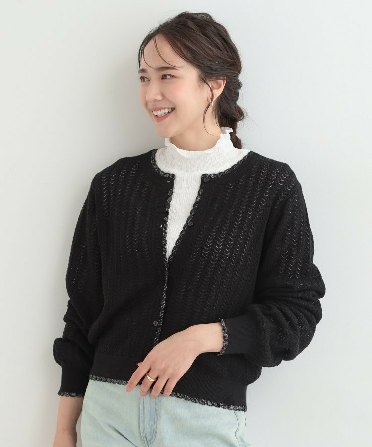 編み柄が上品 ラメ入り透かし編みカーディガン