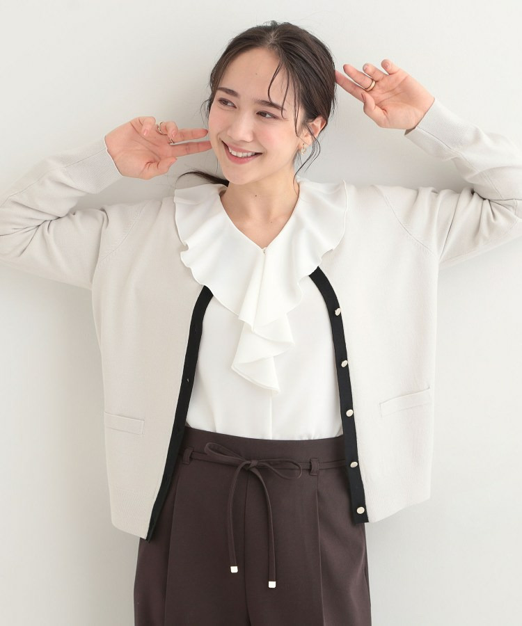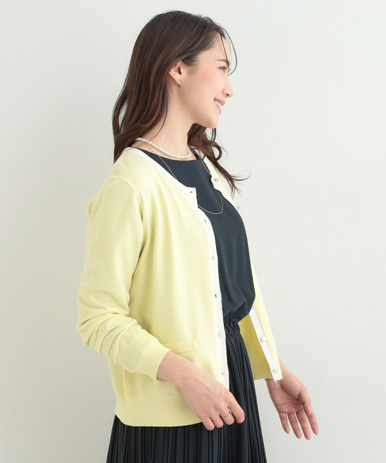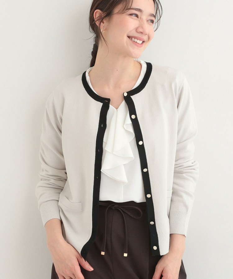 すっきりした表情でシルエットがきれいに見えるカーディガンです。