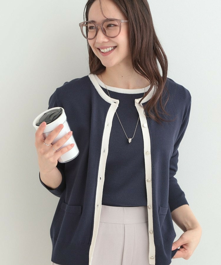 • 【洗濯機可/S-LL/アンサンブル可】配色クルーニットカーディガン11