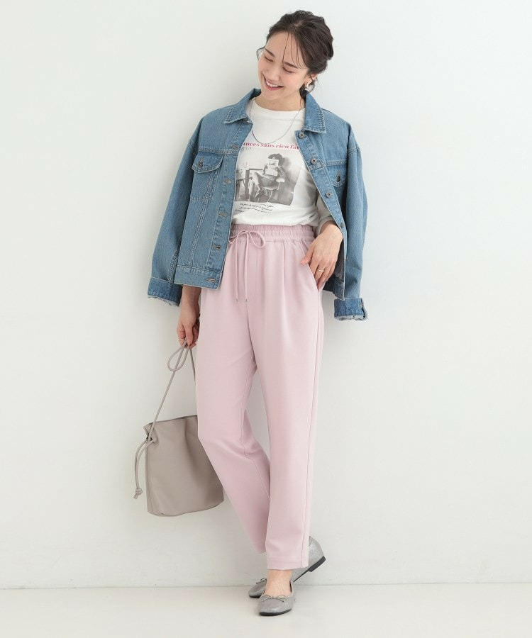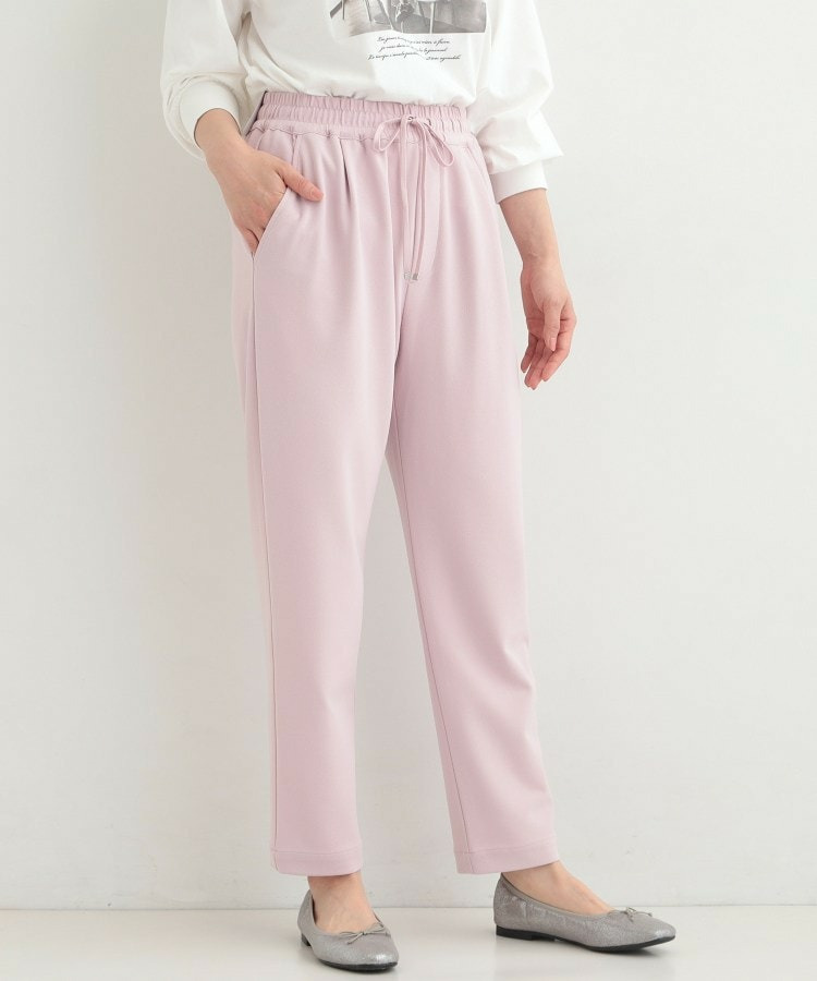 肌触りが優しく、伸縮性のある素材のテーパードシルエットのパンツです。