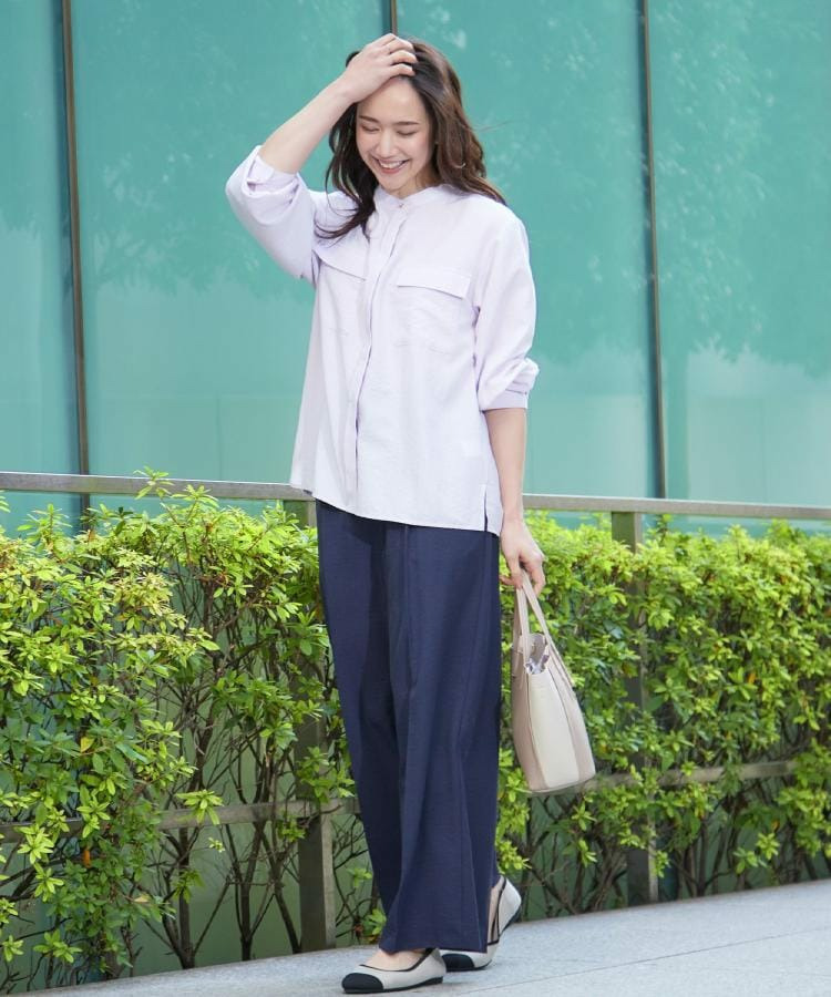 • 【洗濯後しわになりにくい/S-LL/UV】きれいめにもラフにも フラップポケットがポイントのバンドカラーシャツ21