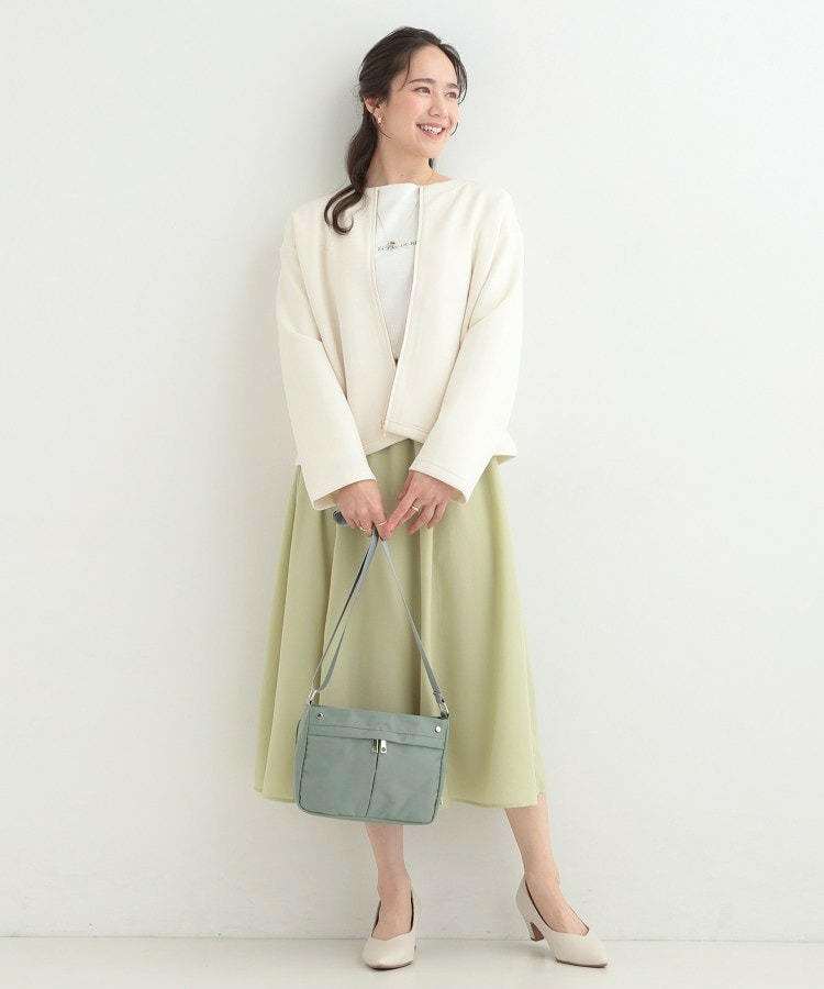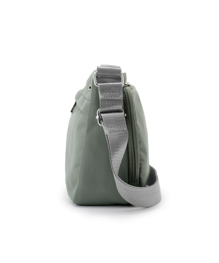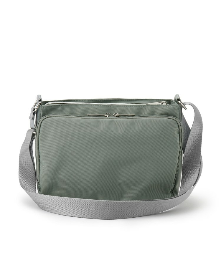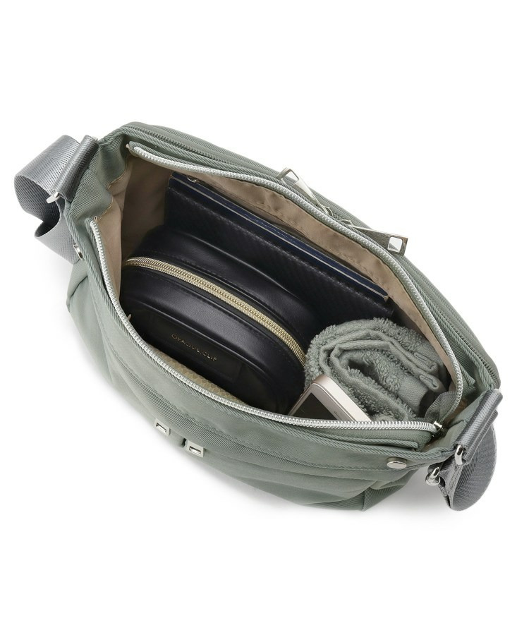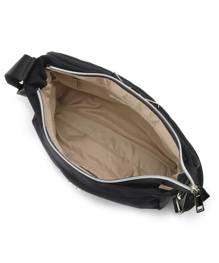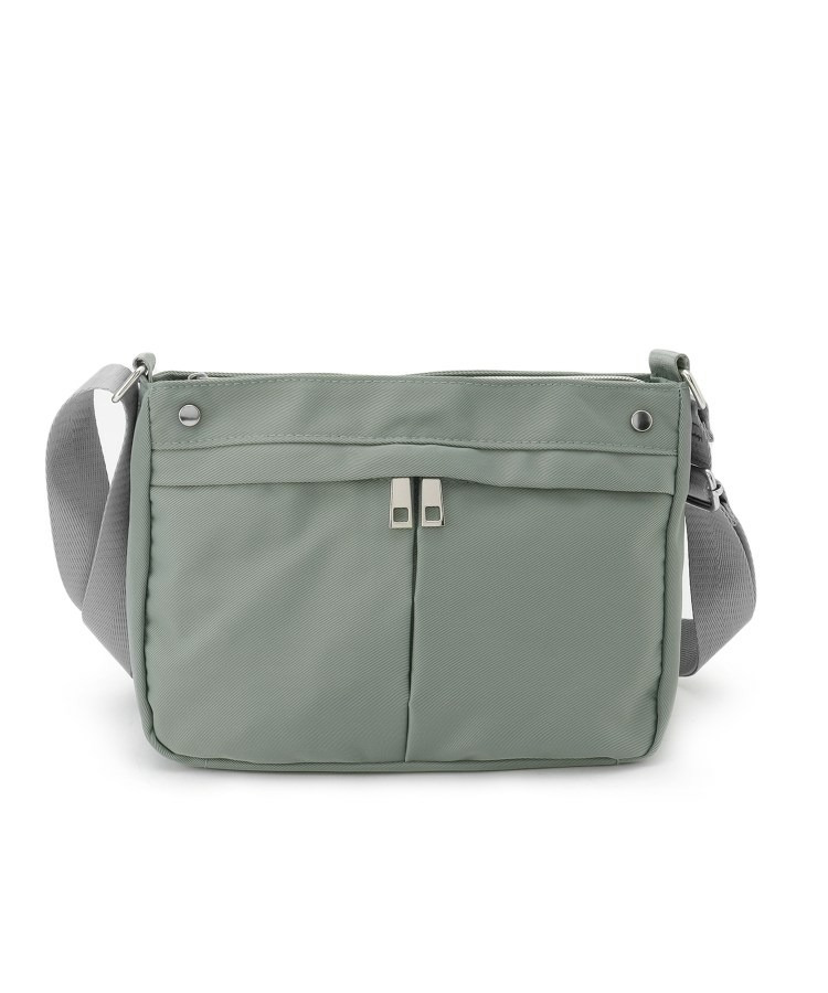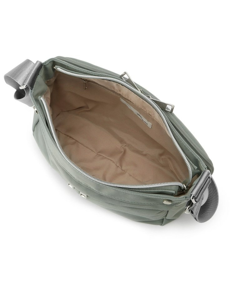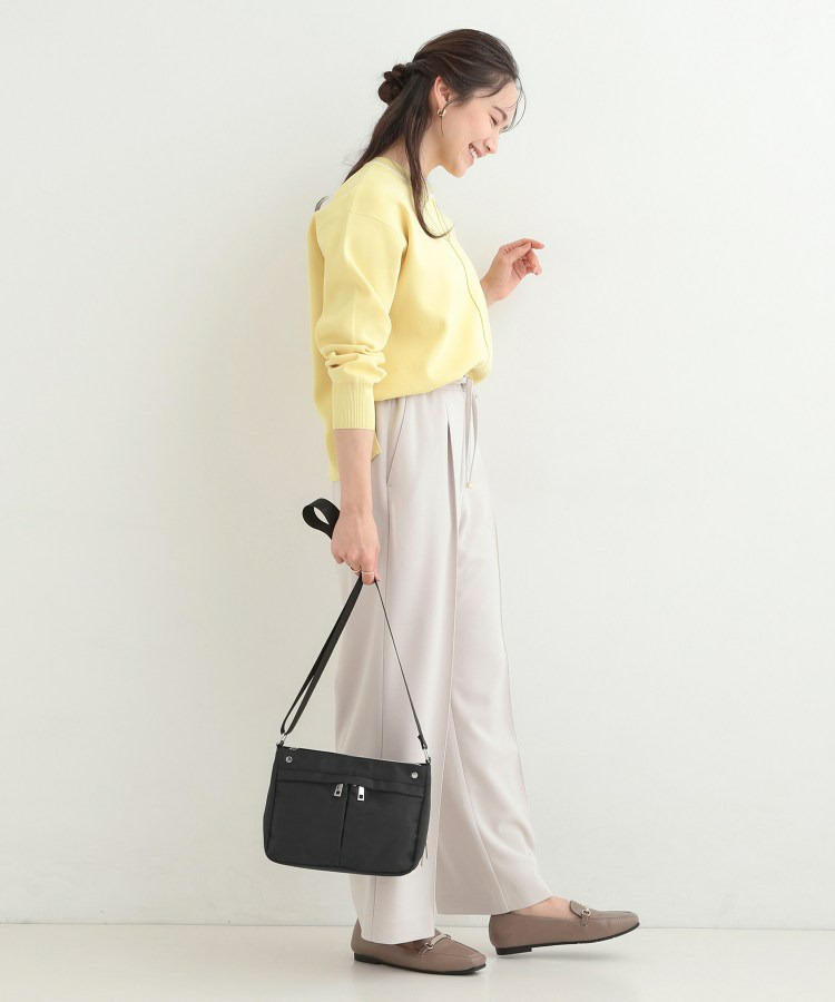 メイン収納の他に、前ポケット、背面にもガバっと開くポケットをのあるショルダーバッグです。