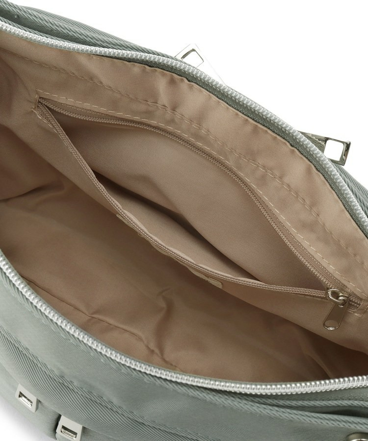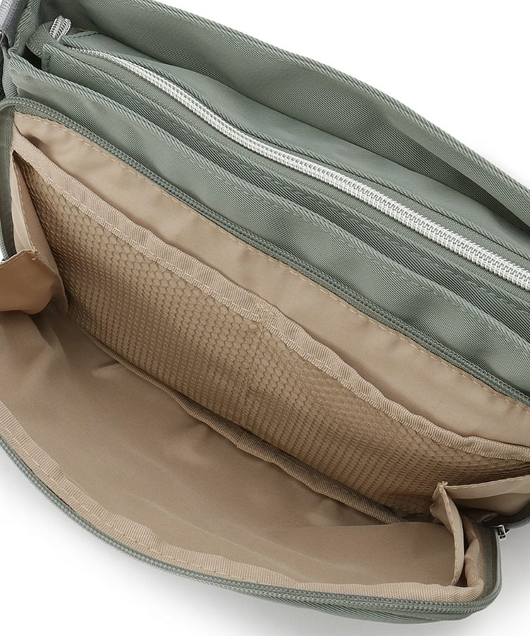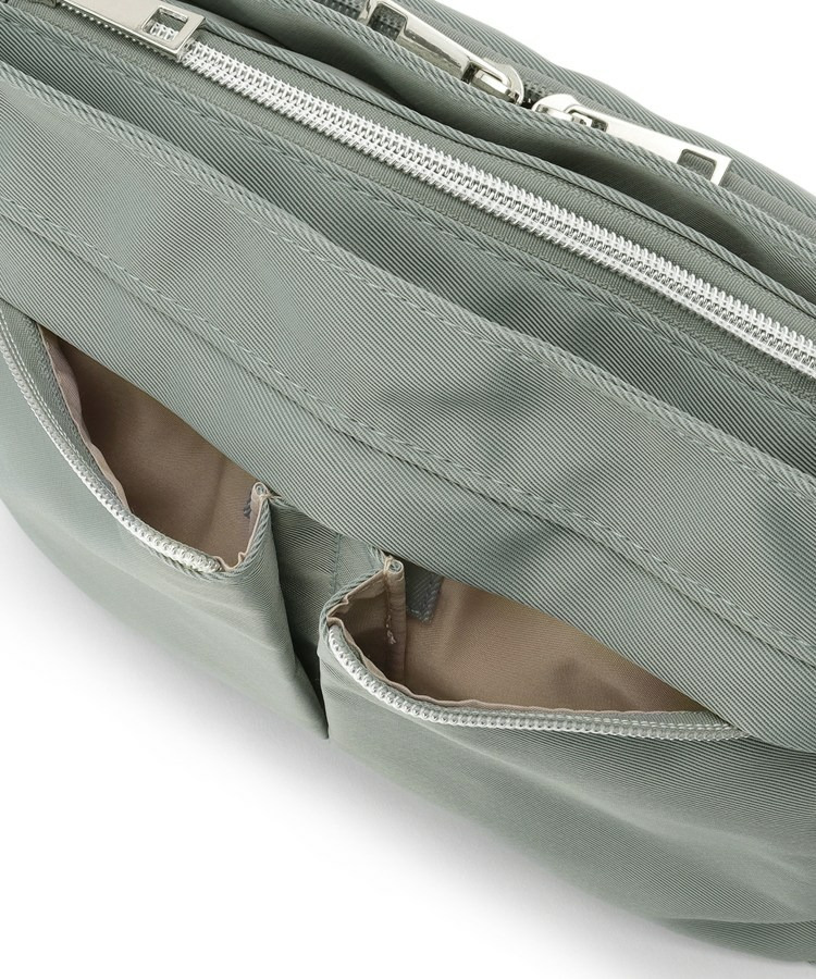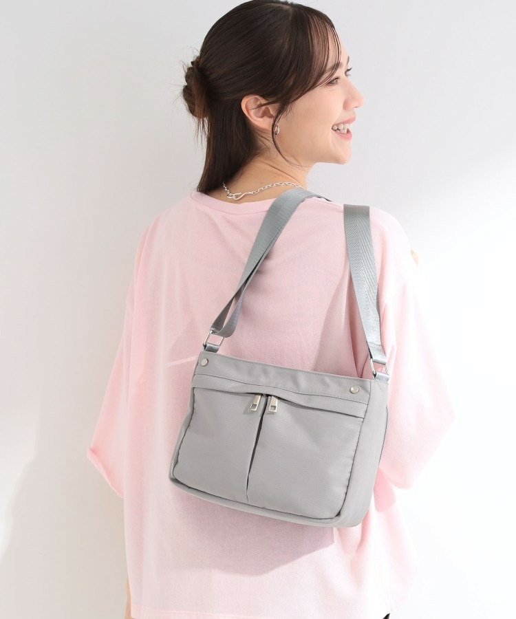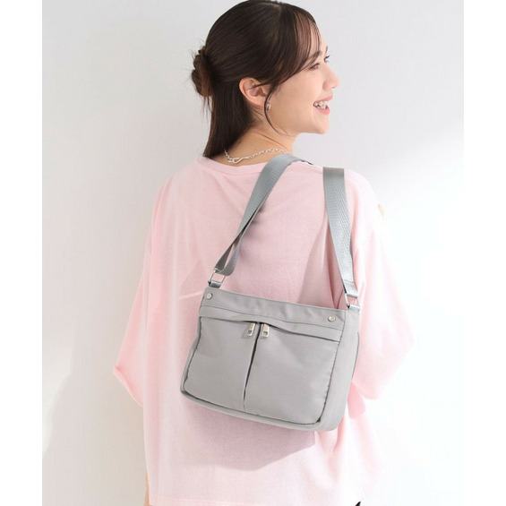 メイン収納の他に、前ポケット、背面にもガバっと開くポケットをのあるショルダーバッグです。