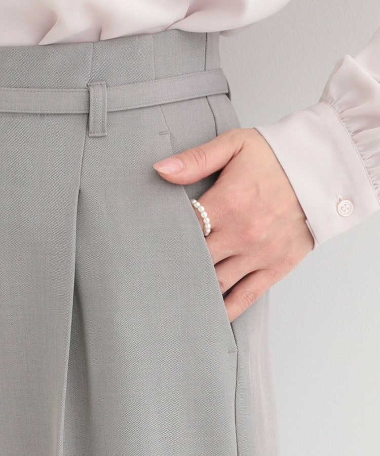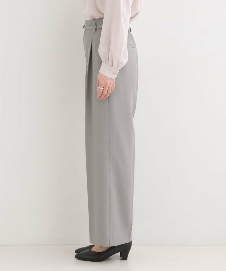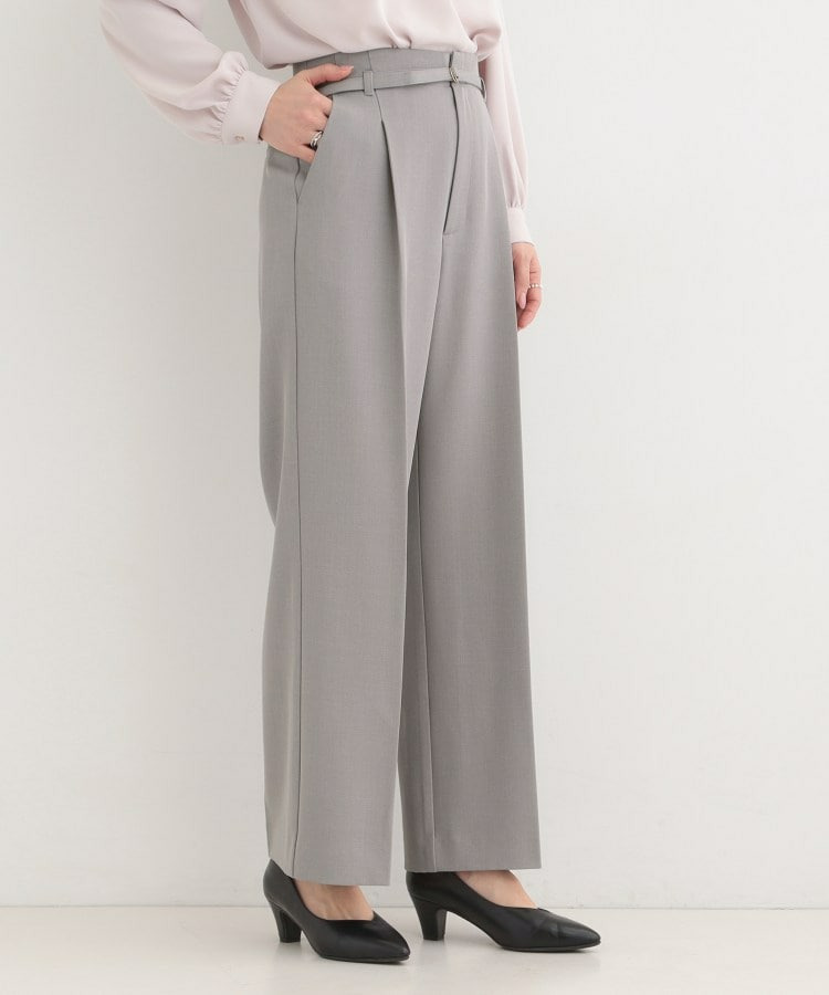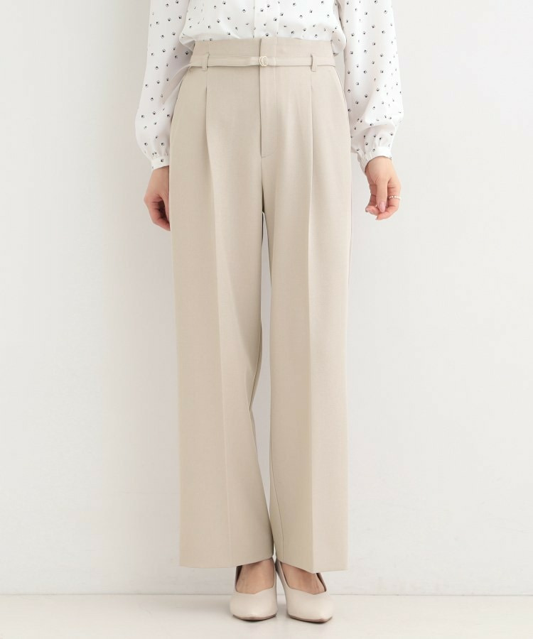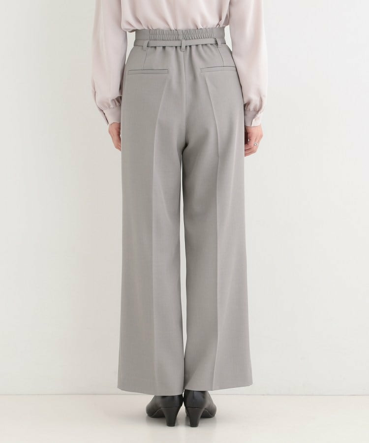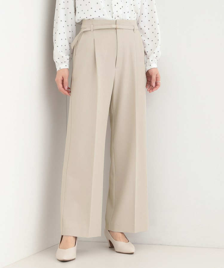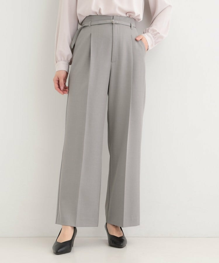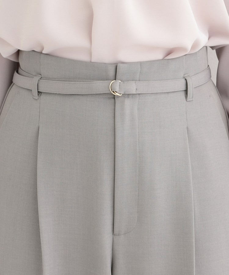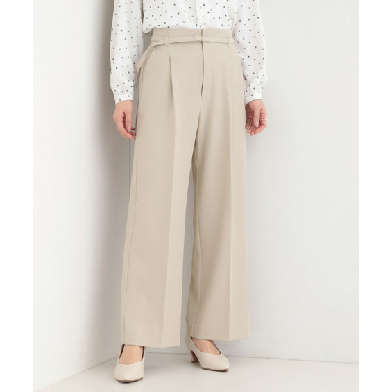 共布細ベルトがついたハイウエストワイドパンツ。