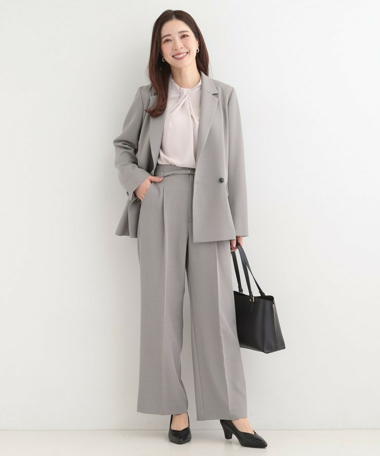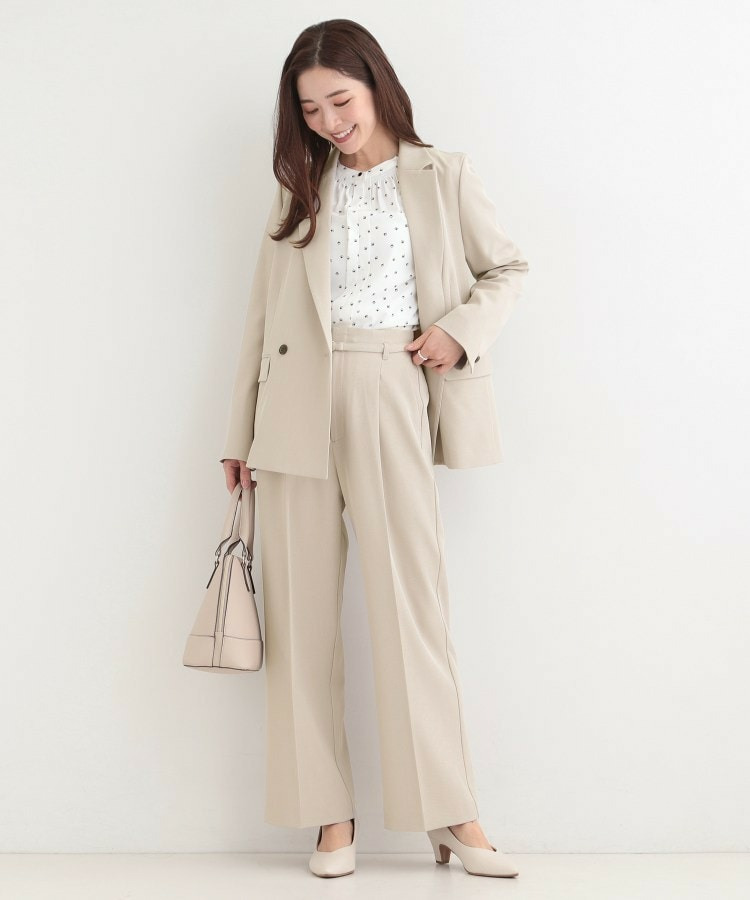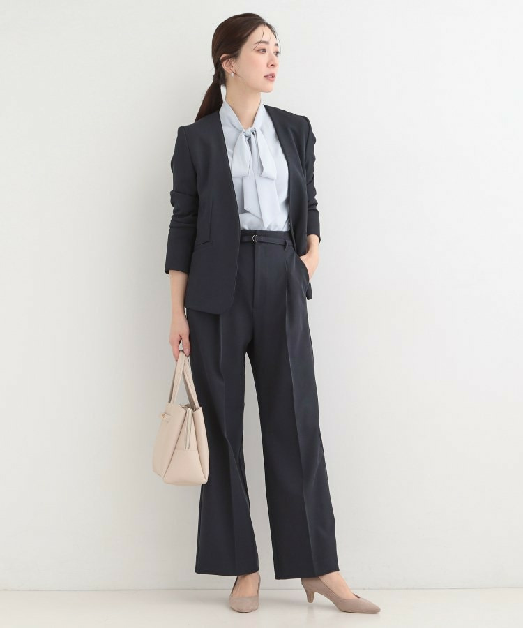 通勤トップスだけでなく、カジュアルトップスを合わせたOFFスタイルも可能です。