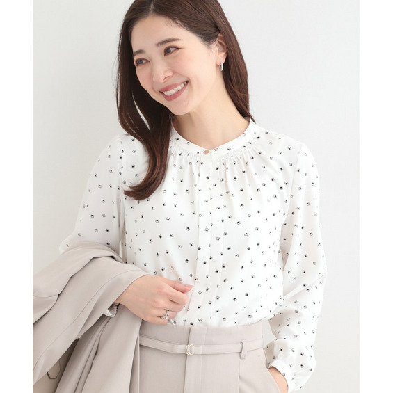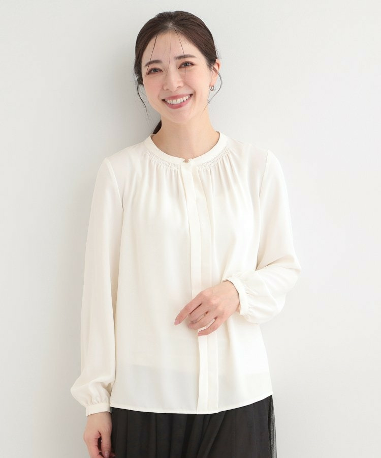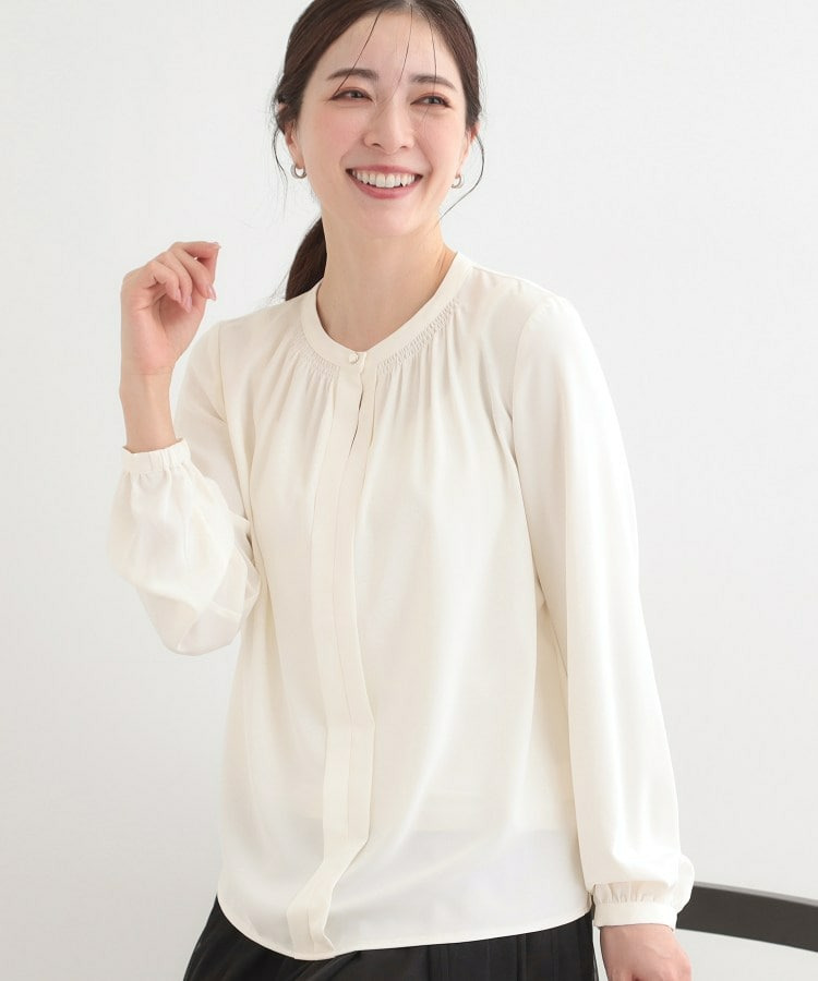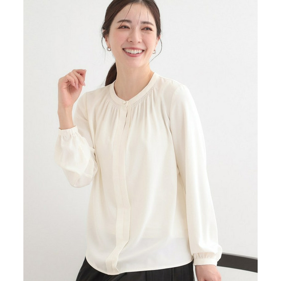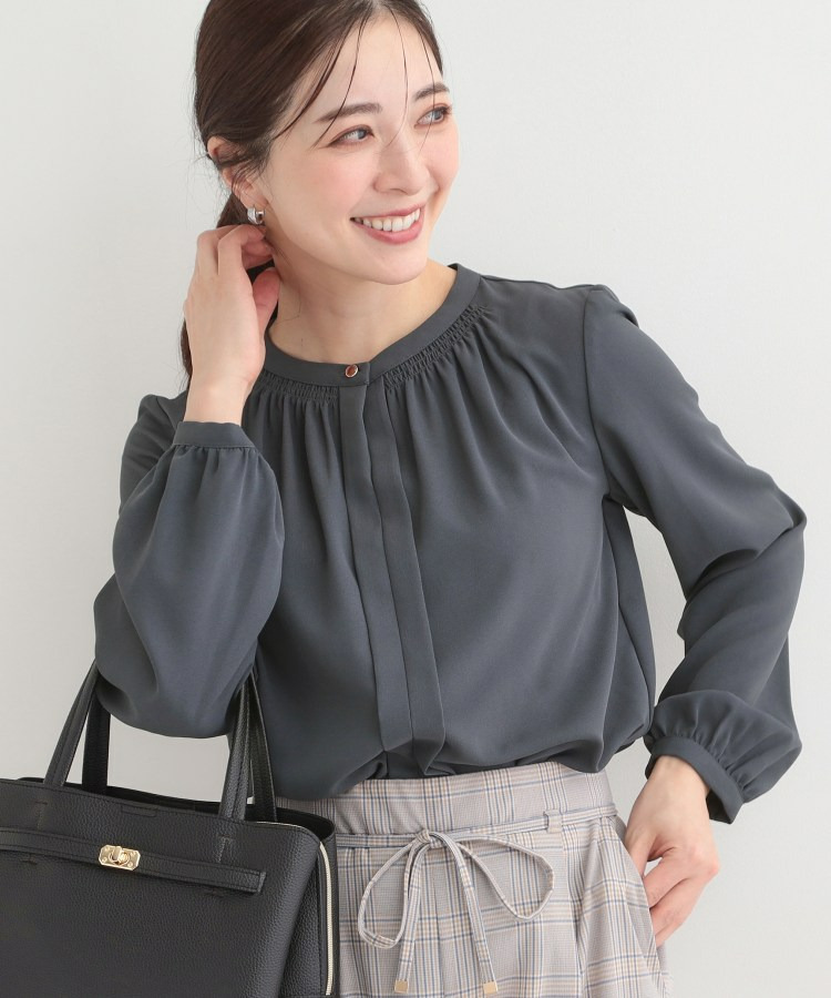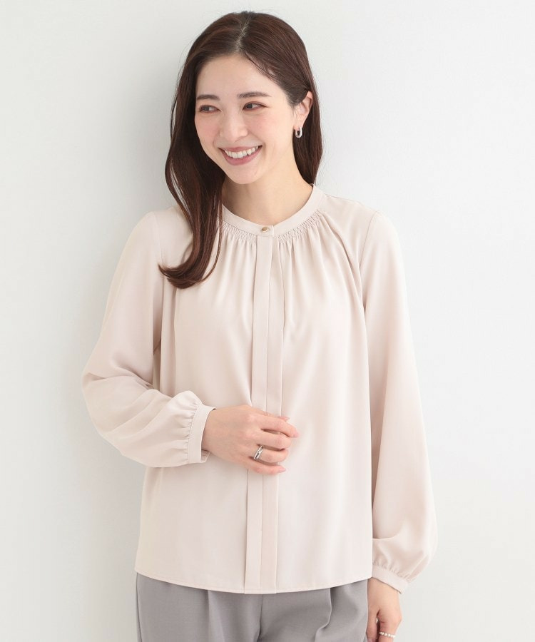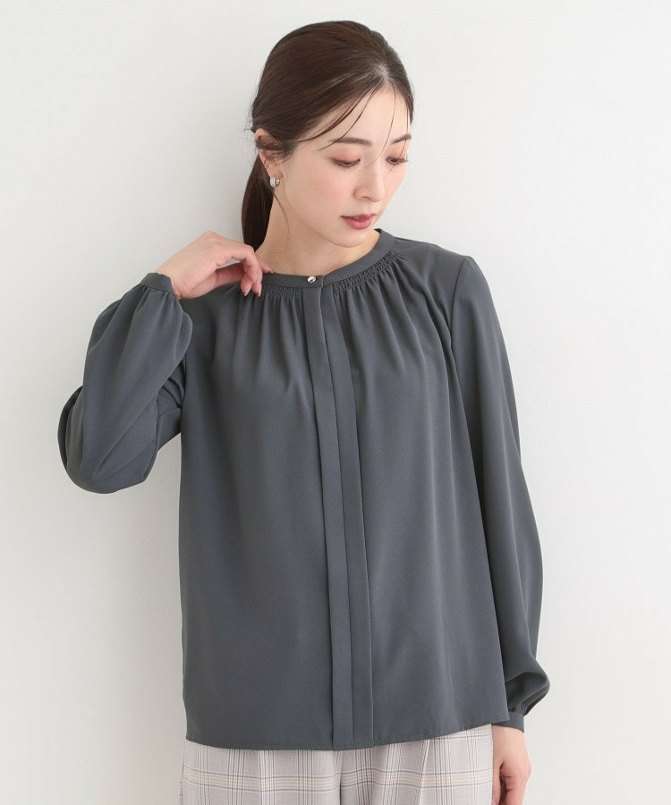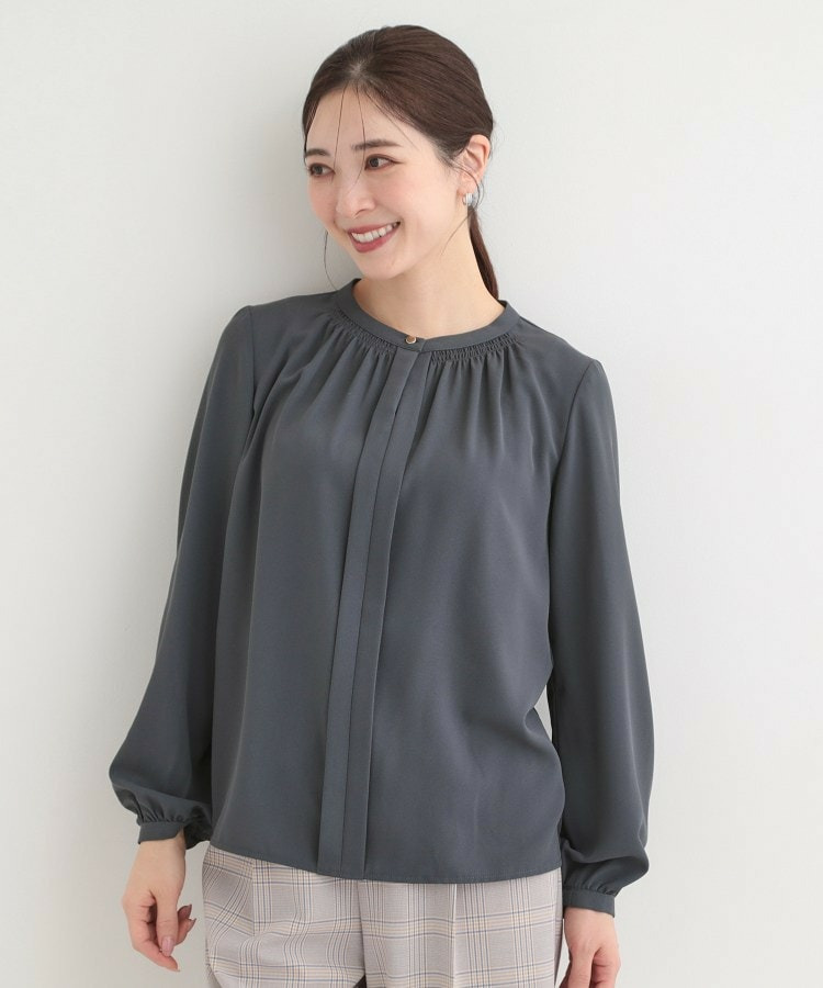 【多機能】メタルボタンがアクセント ふんわりギャザーブラウス