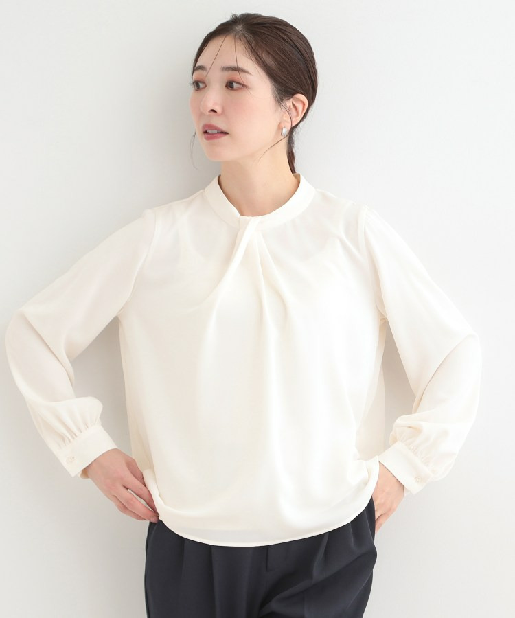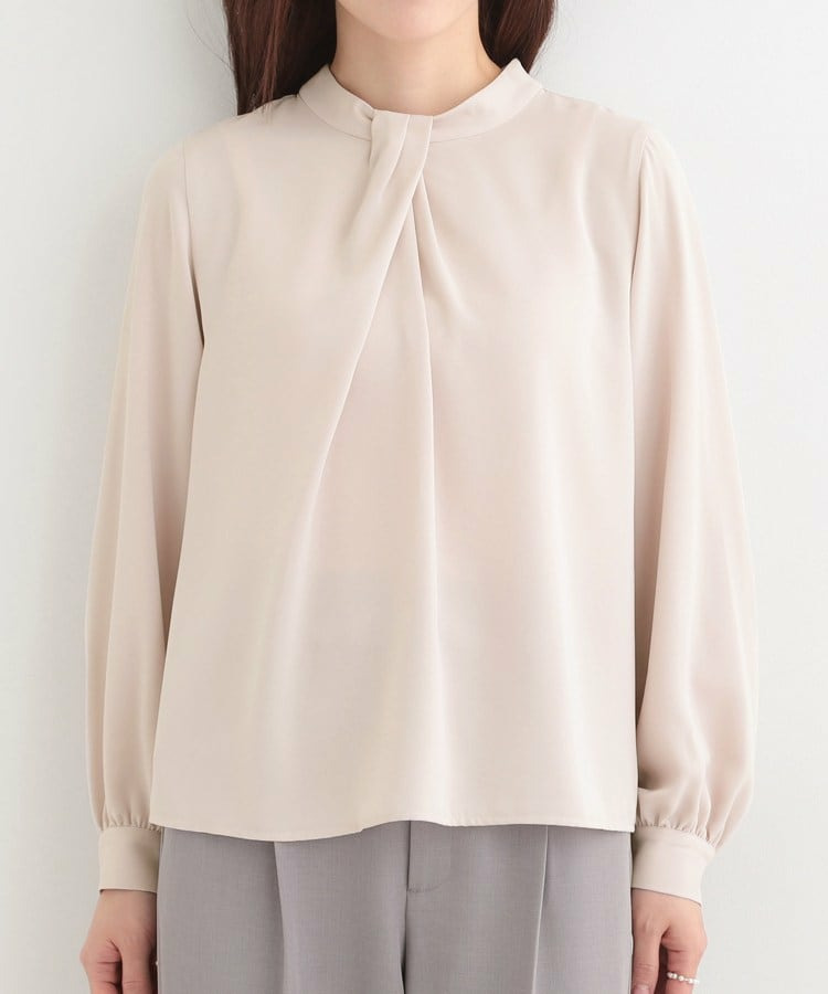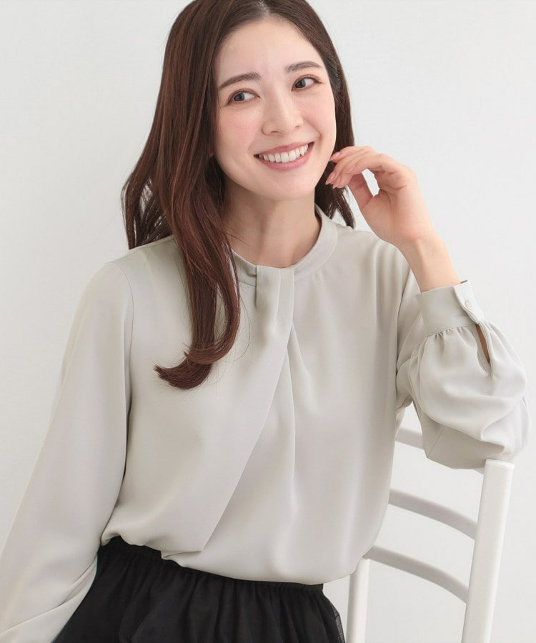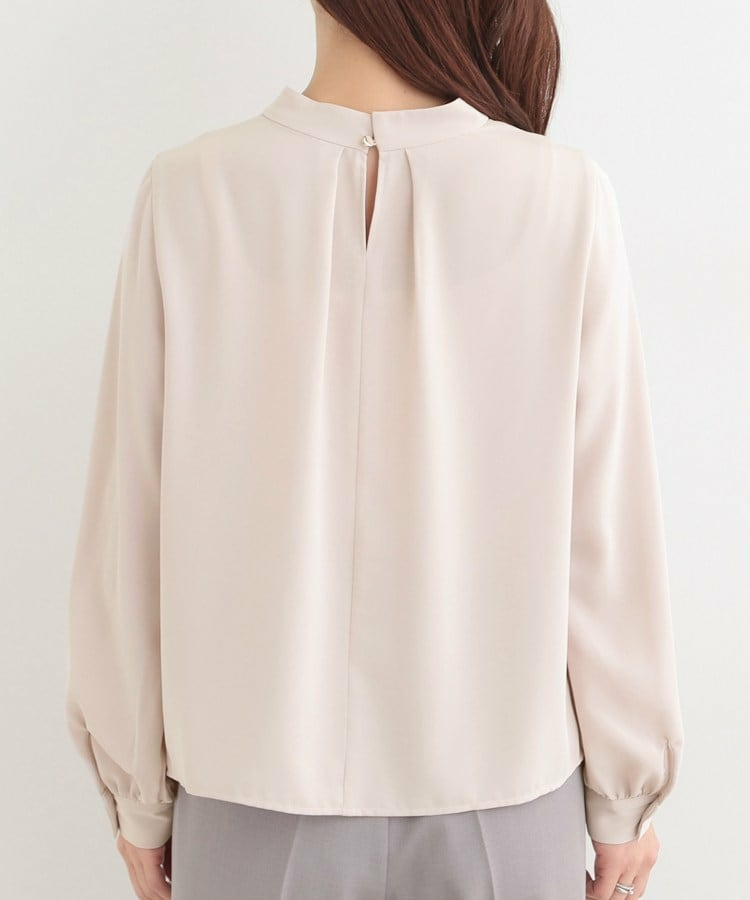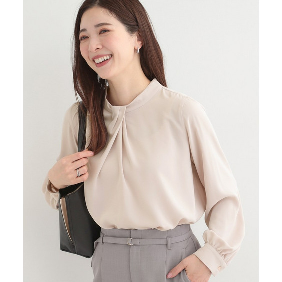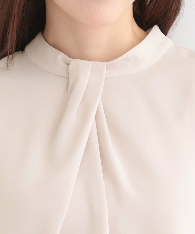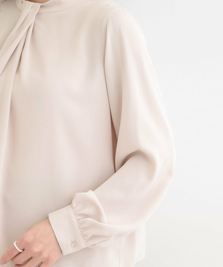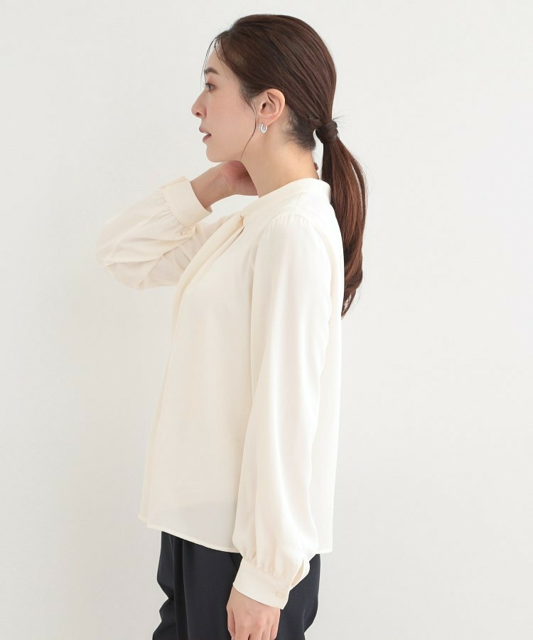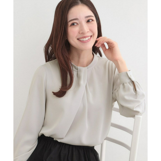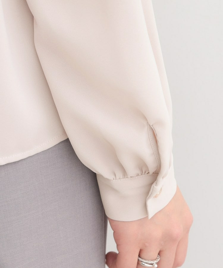 自分で結ぶ必要がなく、着るだけで決まるボウタイデザインブラウス。