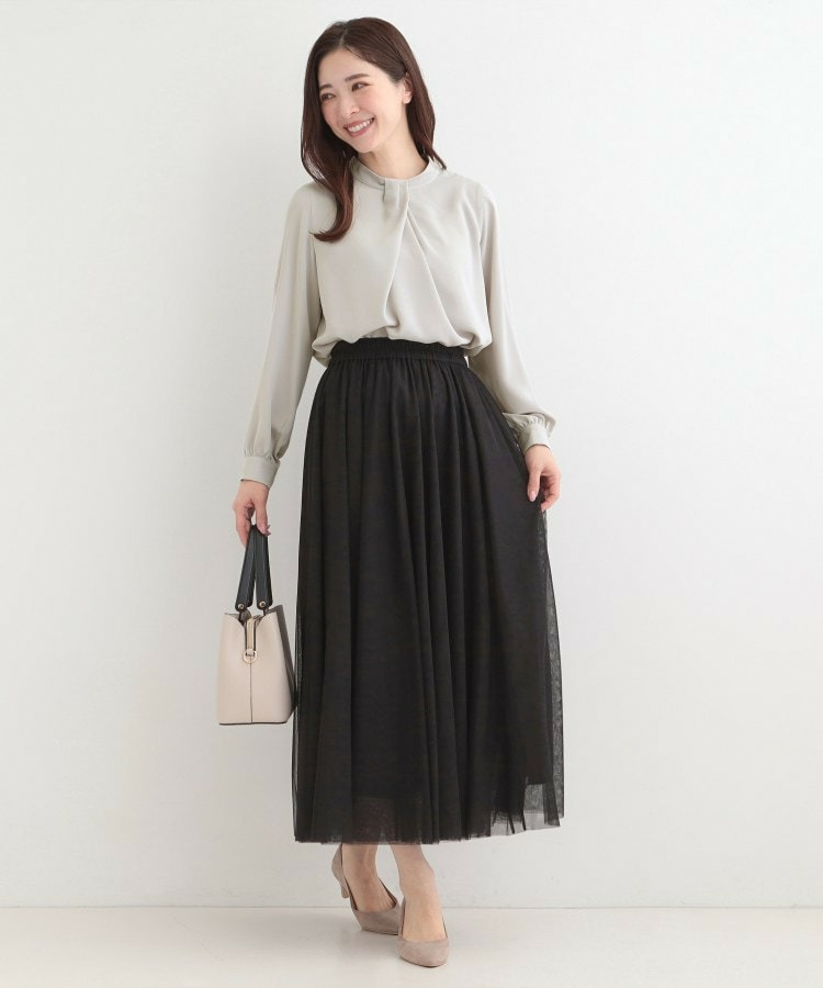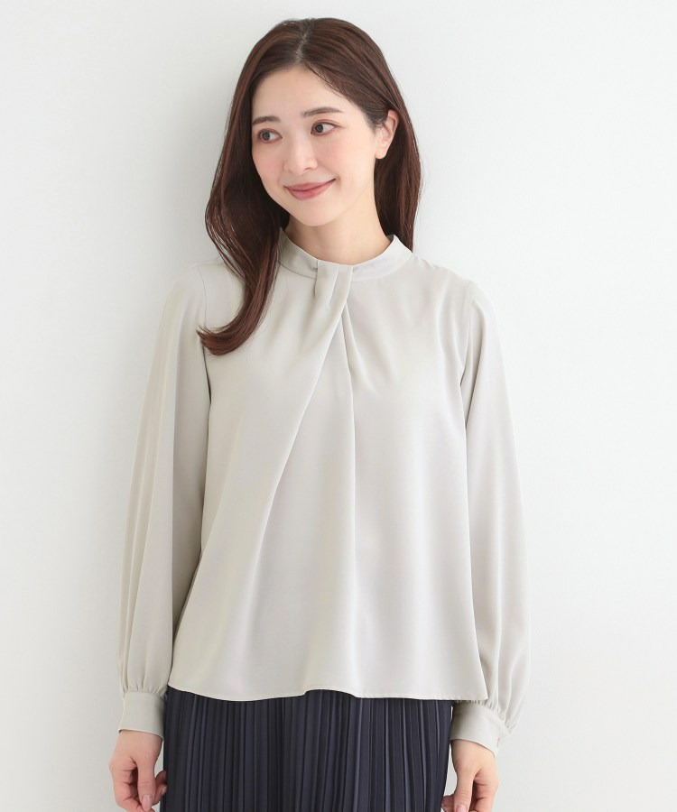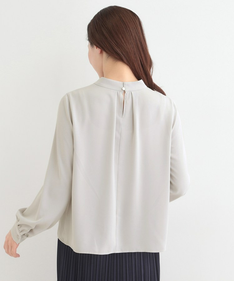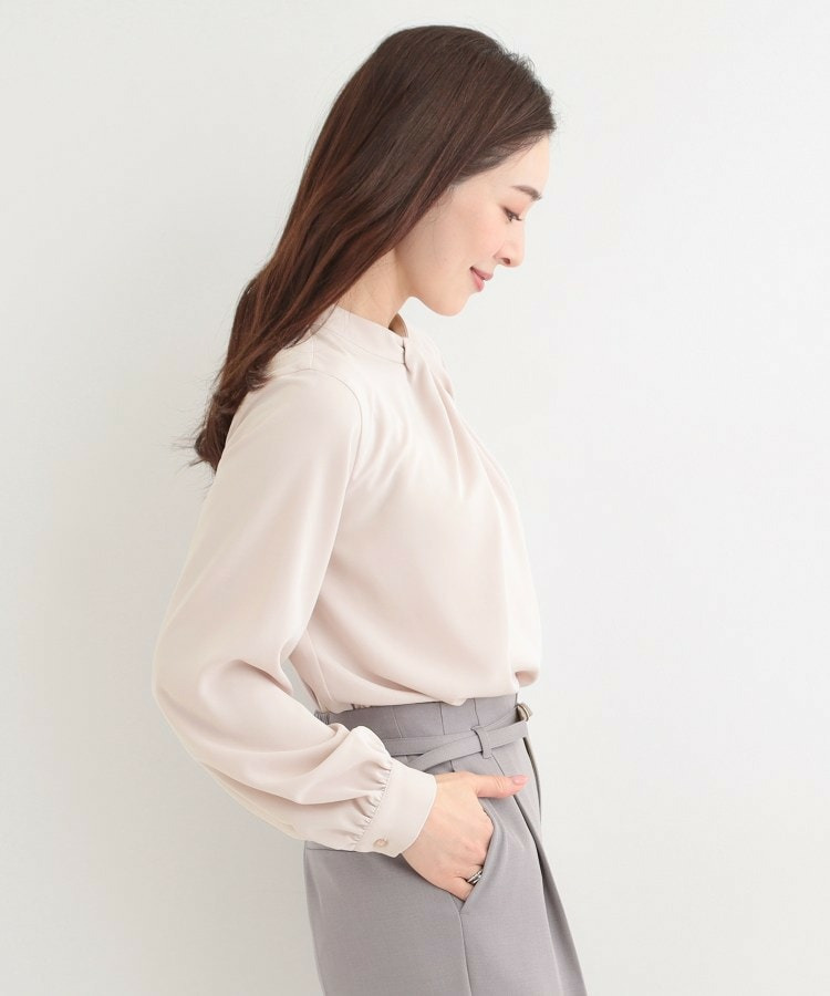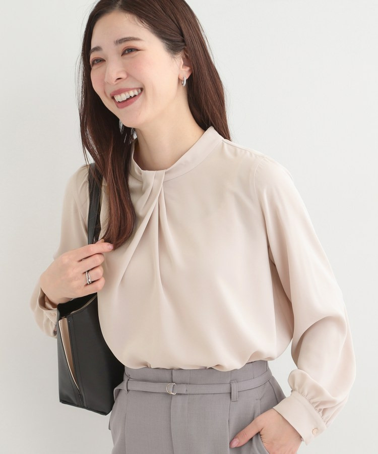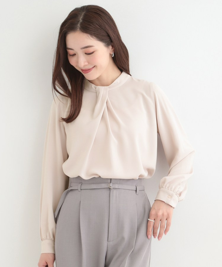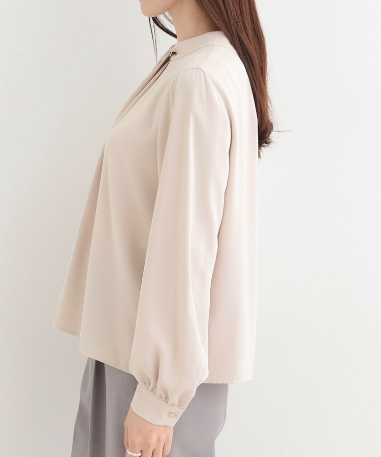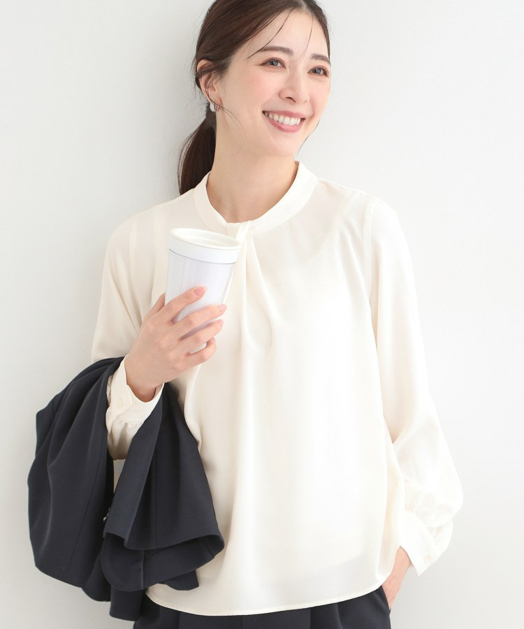 自分で結ぶ必要がなく、着るだけで決まるボウタイデザインブラウス。