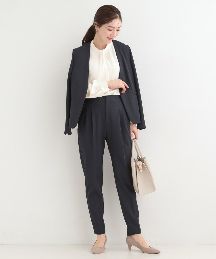 ジャケットインで着用した際に首元に華やかさが出るのがポイントです。