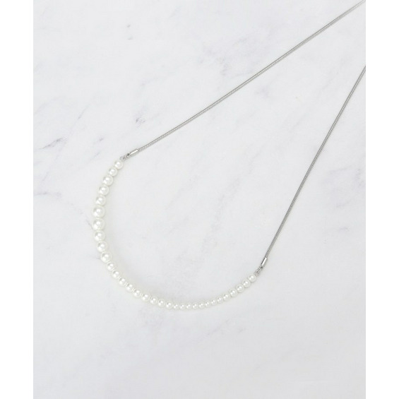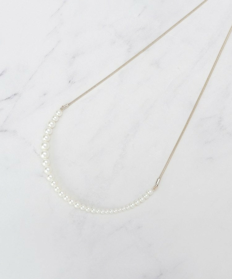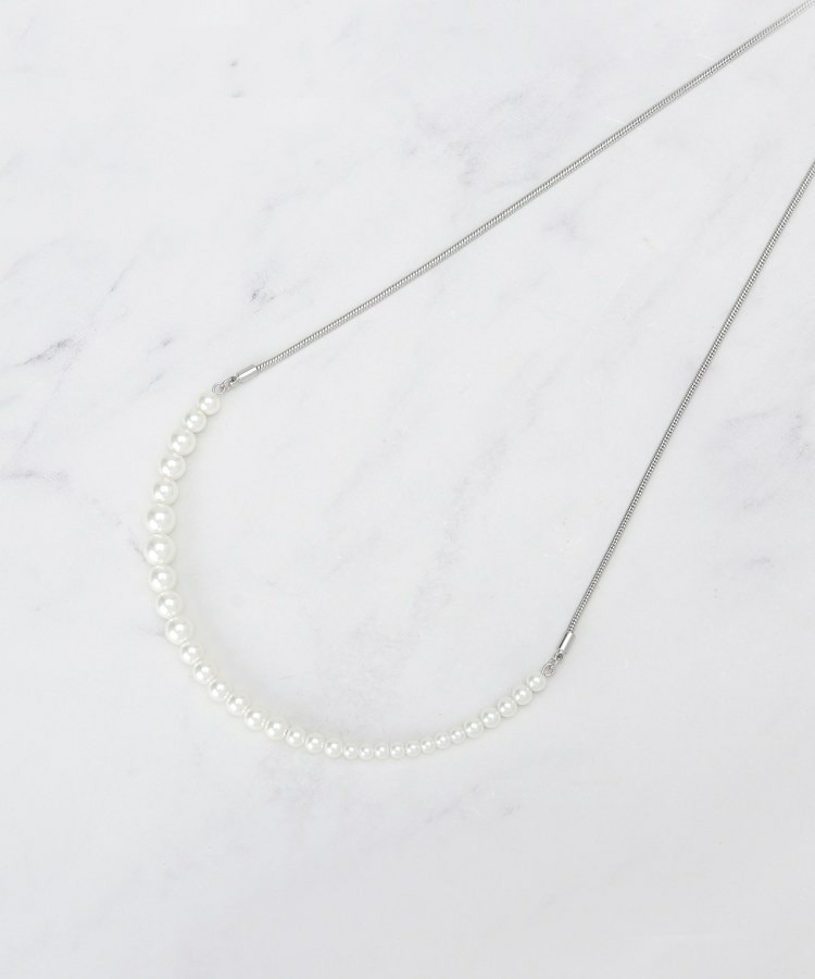 フェイクパールの連なりと細めのメタルチェーンを組み合わせたコンビネーションネックレス。