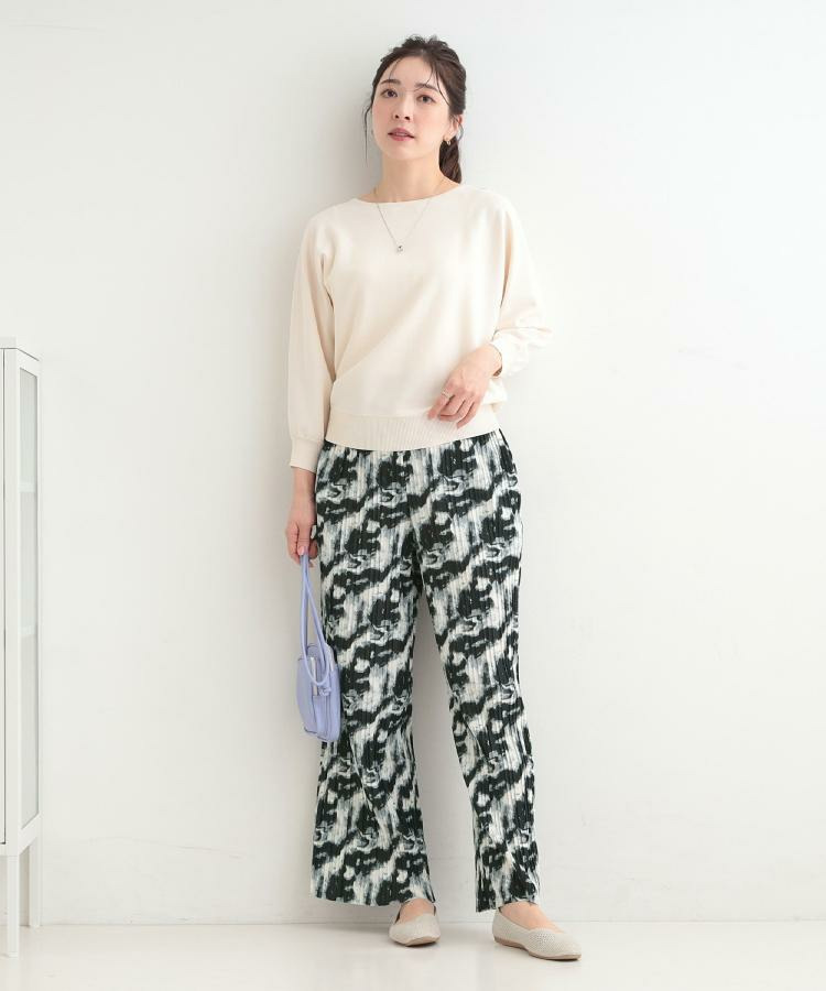 無地なので、プリント柄やプリーツ加工のエアリーなふんわり系シルエットのスカート合わせも上品にまとまります。