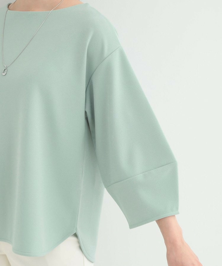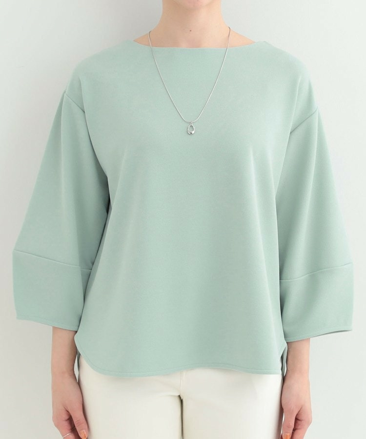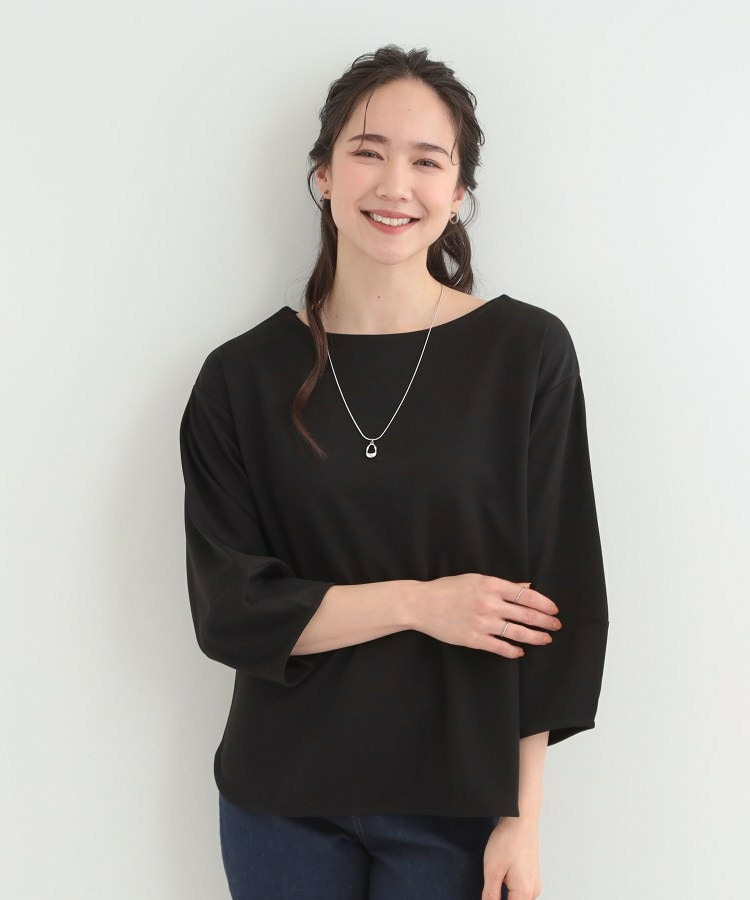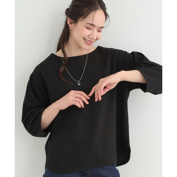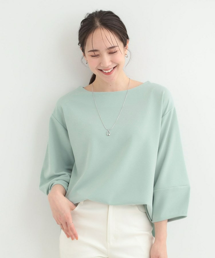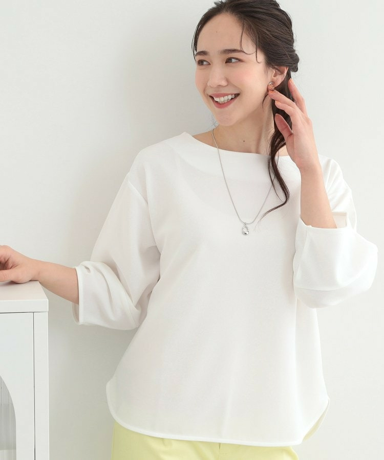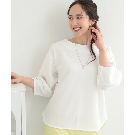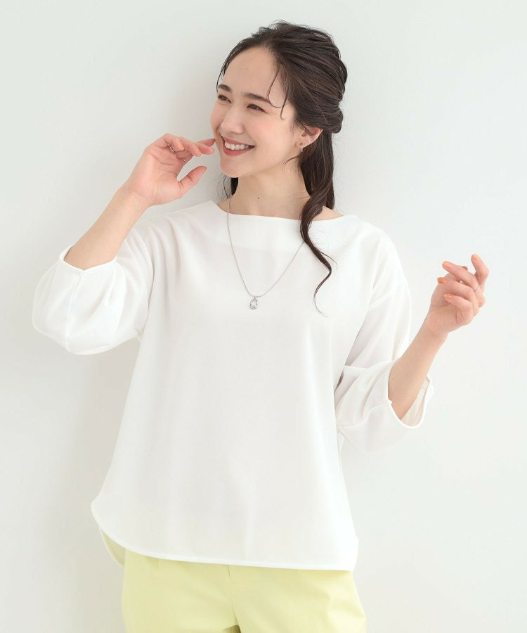 すっきりとしたボートネックラインで、首元から鎖骨を美しく見せてくれます。