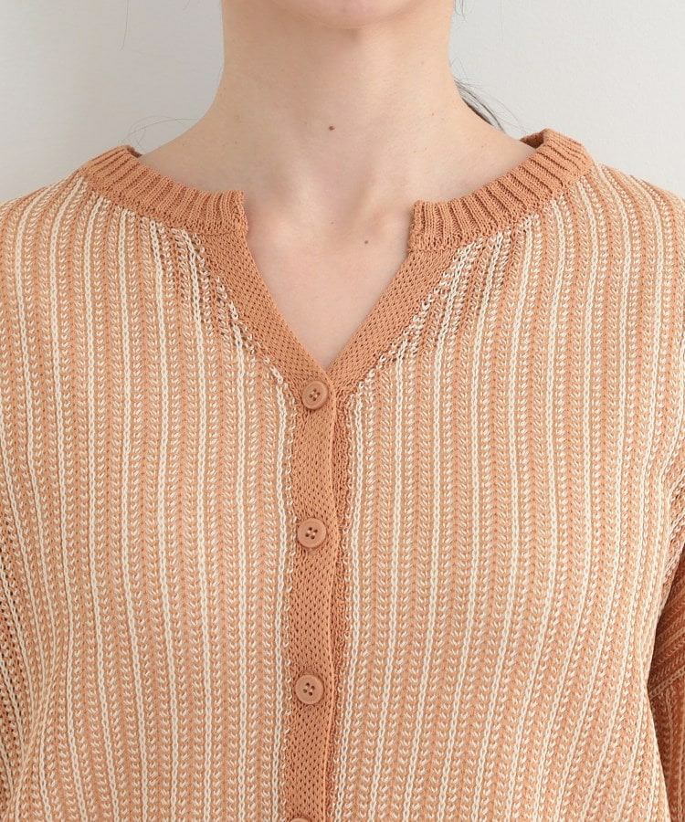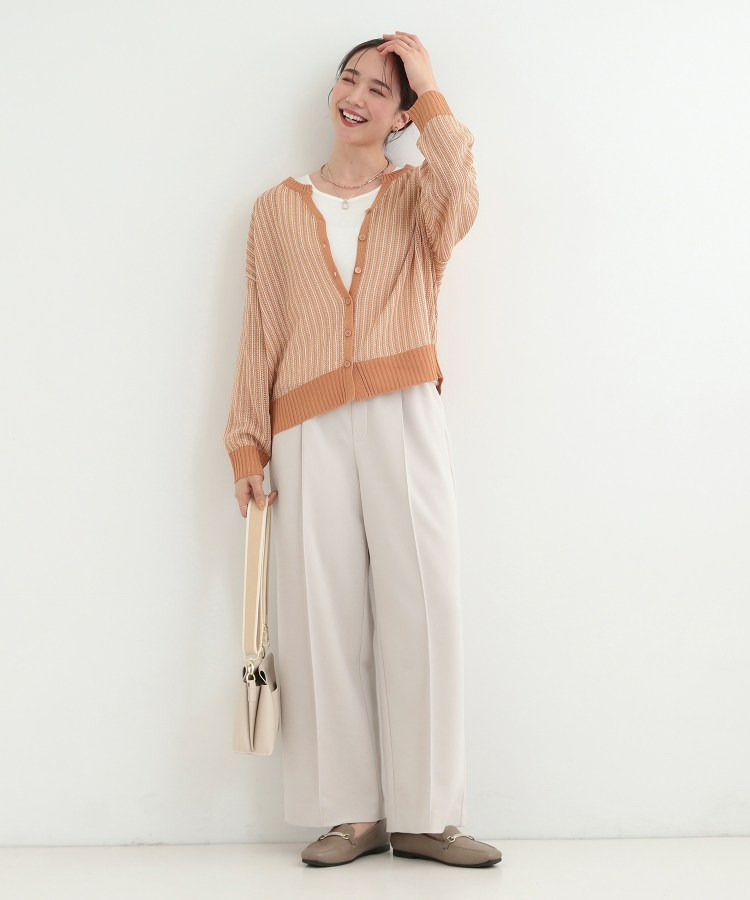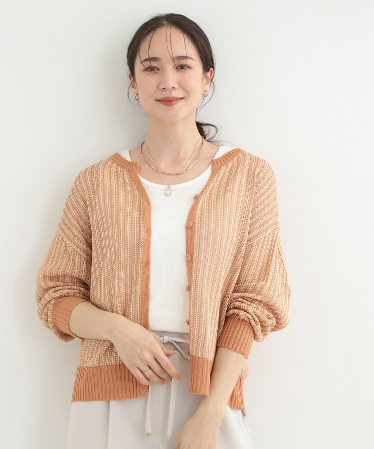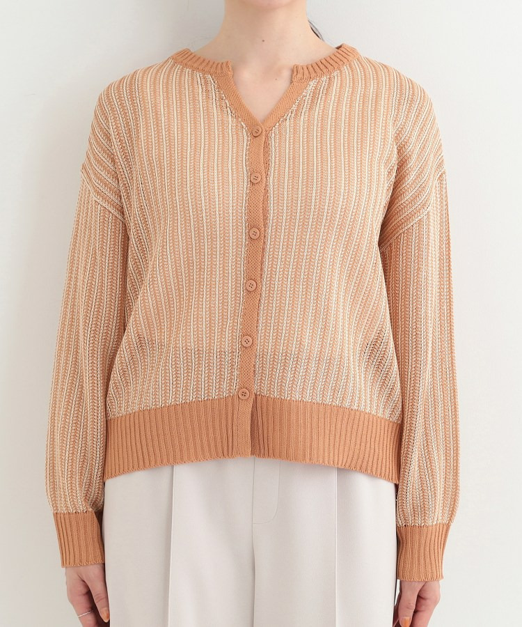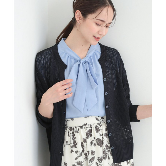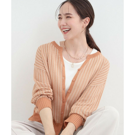 羽織りとして、Tシャツやワンピースの上に難なく羽織れ、キーネックの効果で顔回りがこなれ見えに。