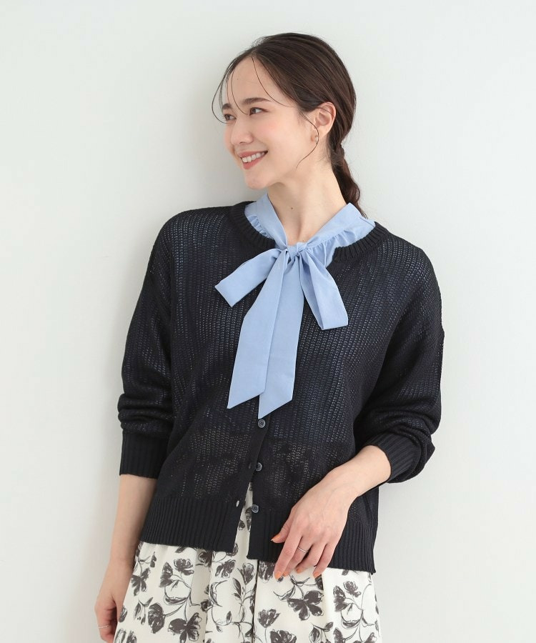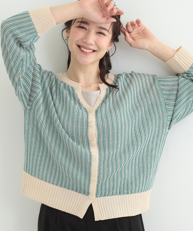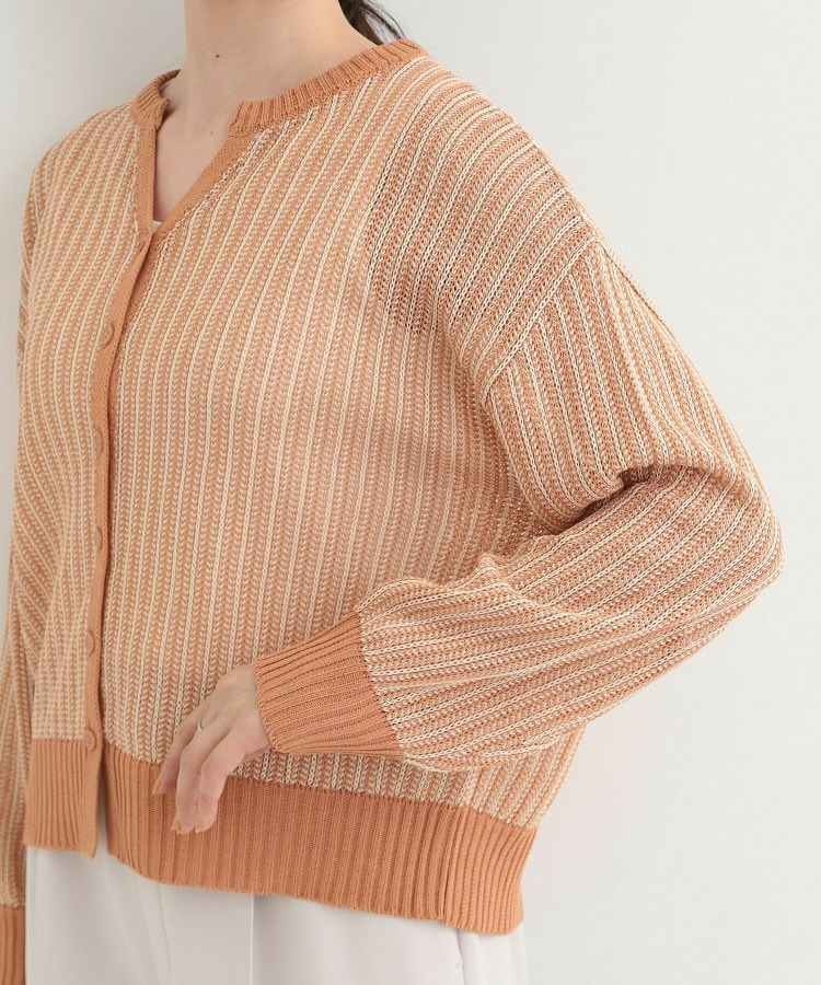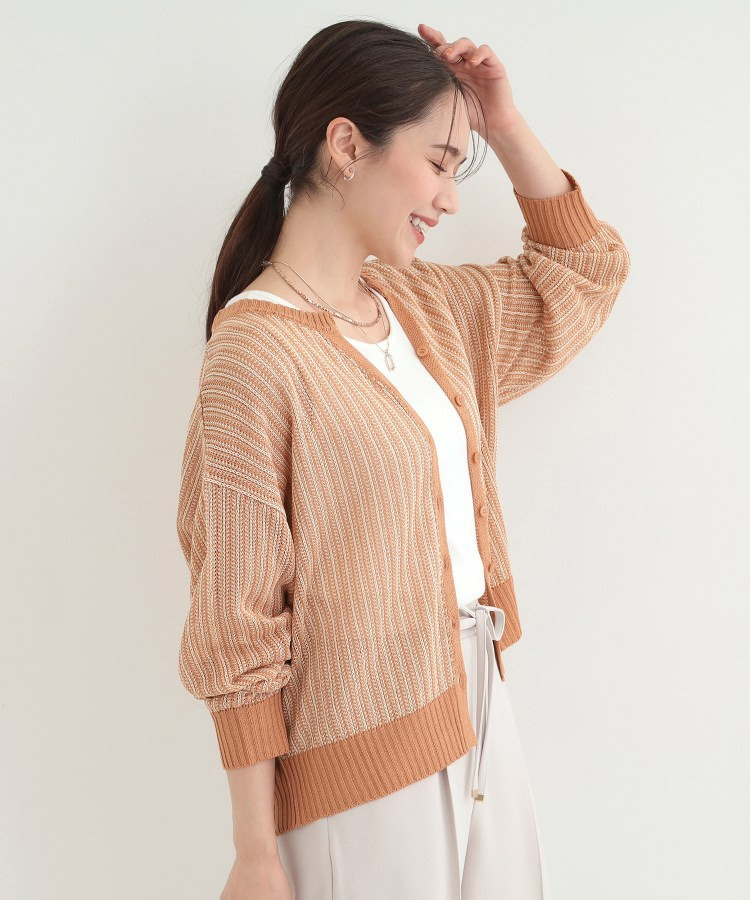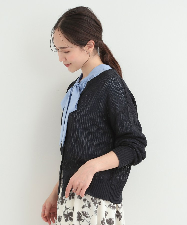 羽織りとして、Tシャツやワンピースの上に難なく羽織れ、キーネックの効果で顔回りがこなれ見えに。