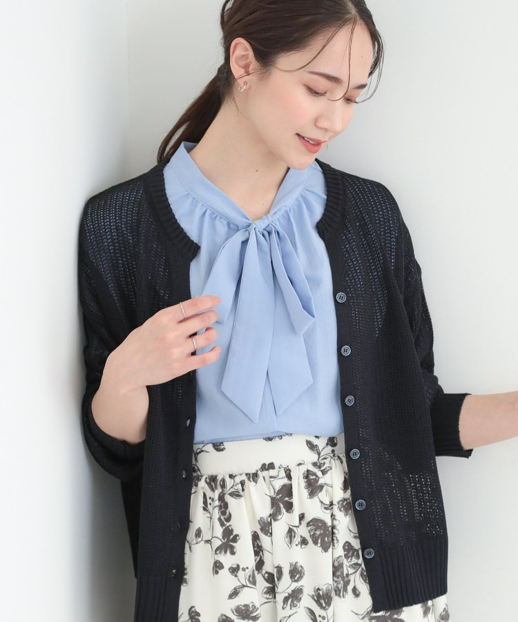 キーネックがポイントで、首元を軽やかに見せてくれるほか、インナーとのレイヤードも楽しめるデザインです。