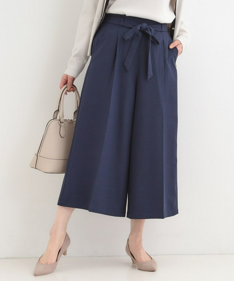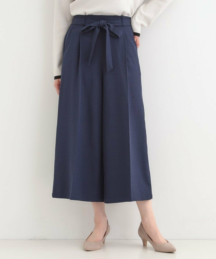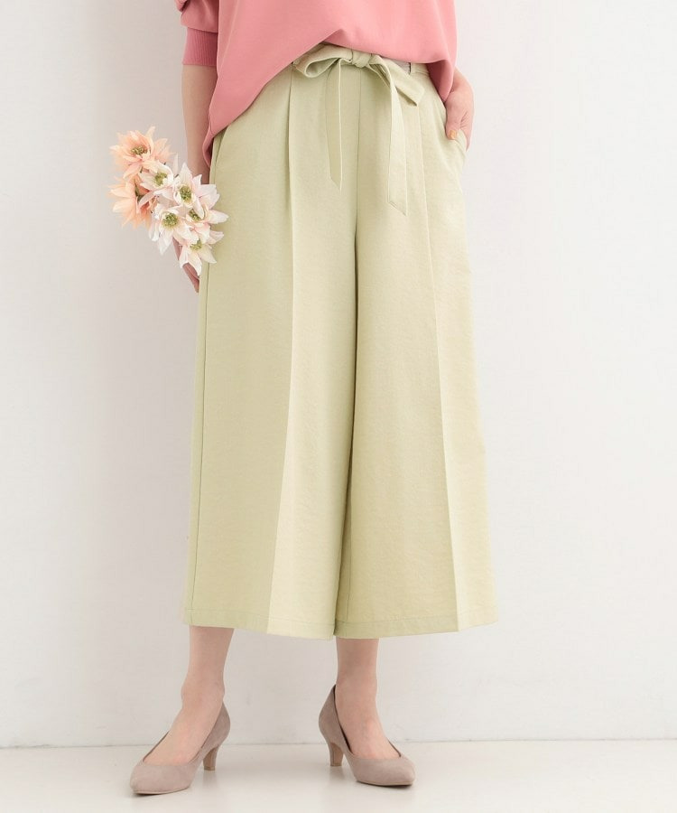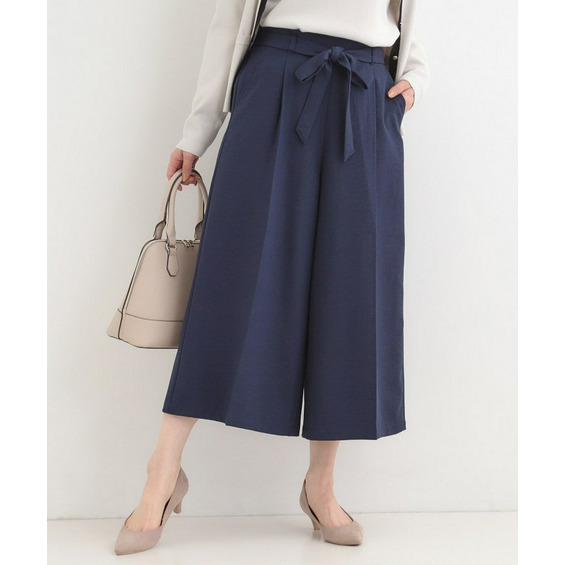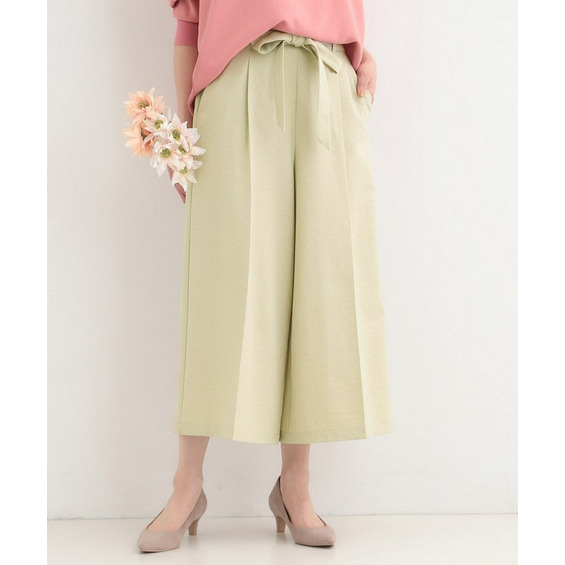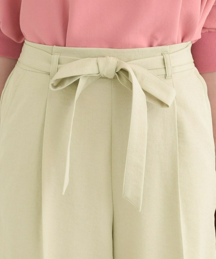 【洗濯機可/S-LL】ハイウエストで美脚見え リボンワイドパンツ