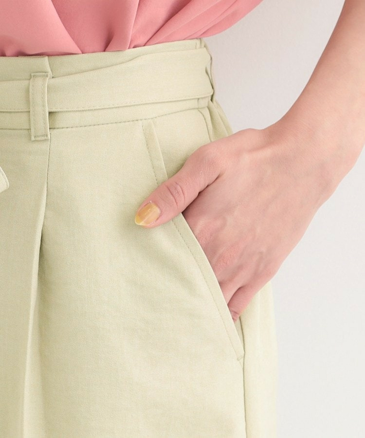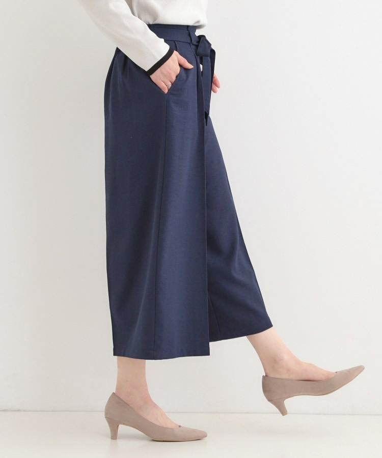 程よくハイウエストのシルエットで美脚効果が期待できるワイドシルエットのパンツ。