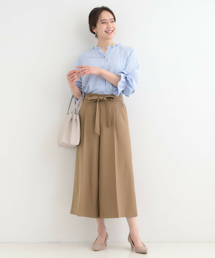 センタープレスが入っているのでブラウスや、ジャケット合わせできれい見えするスタイリングや、ゆったりとしたニット合わせでカジュアルな印象に見せることもできます。