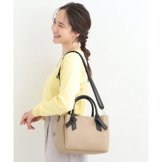 トートバッグのハンドルの根本部分がリボンのようにキュッと結んだデザインになっています。