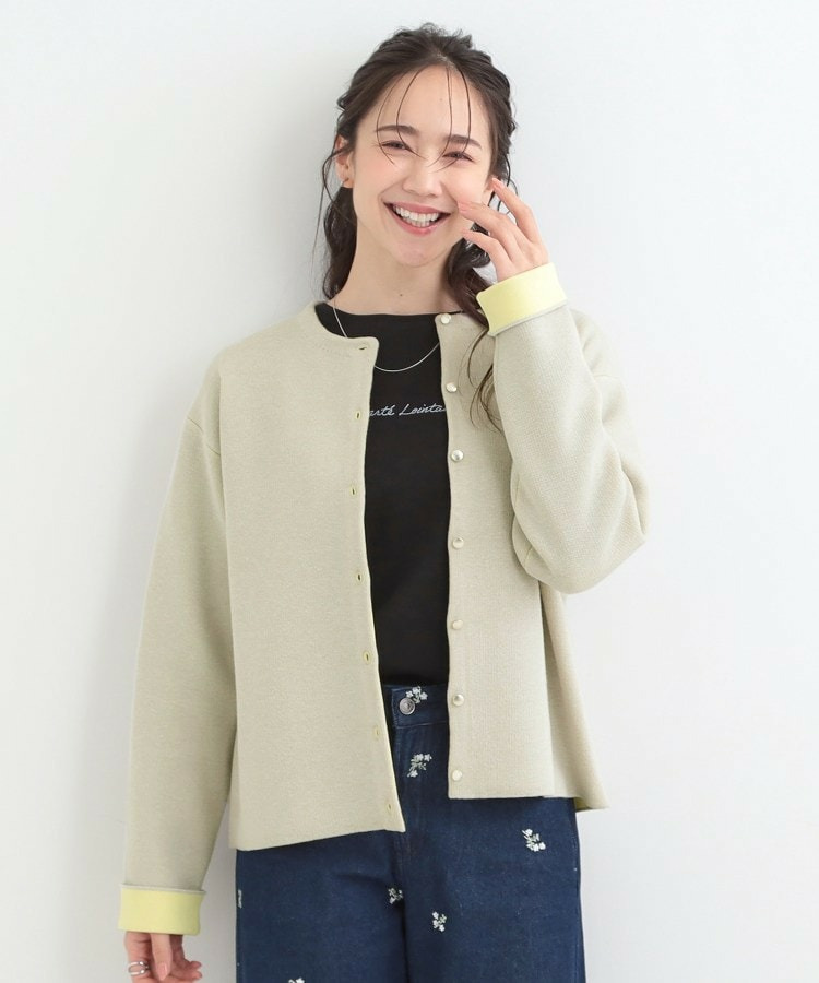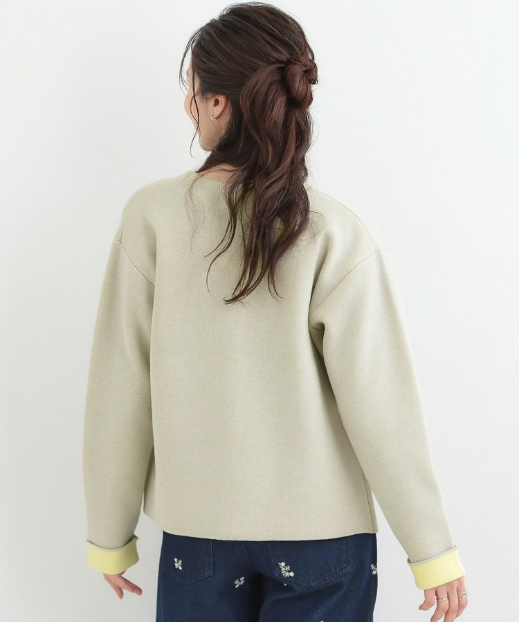 違うカラーの表地と裏地が貼り合わせてあるダブルフェイス仕立てのカーディガンです。