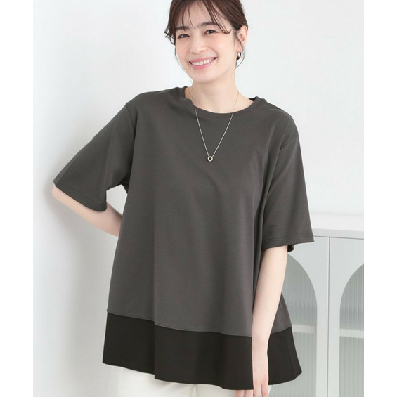【接触冷感/UVカット/抗菌防臭】体型カバーも叶う 裾切り替えAライントップス