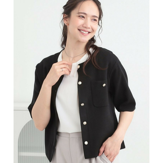 【S-LL/洗濯機可】金ボタン5分袖カーディガン