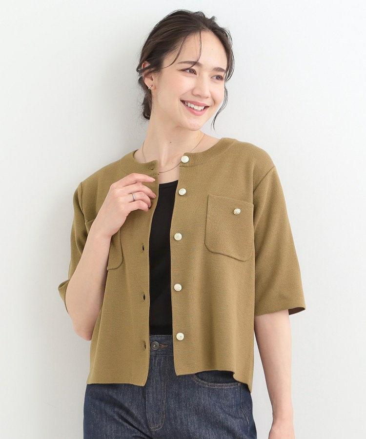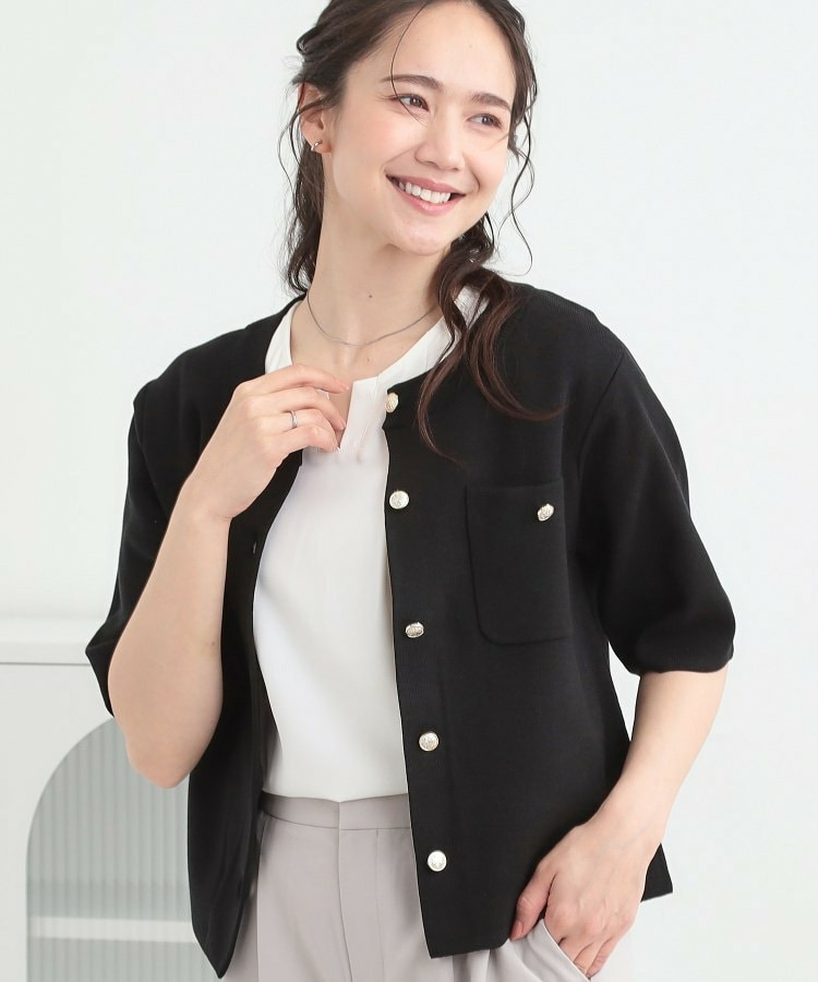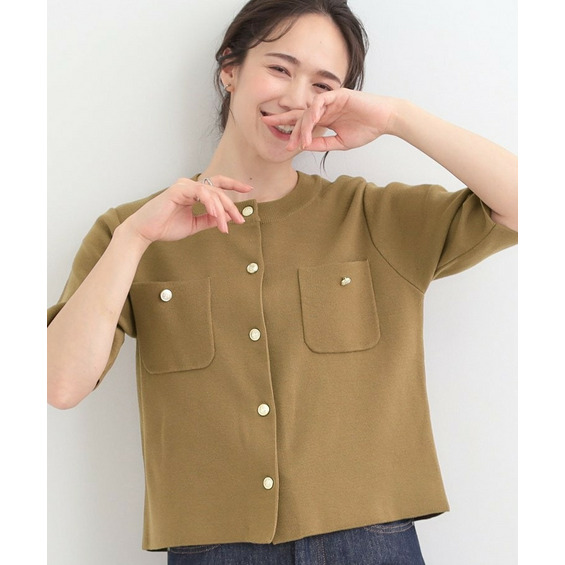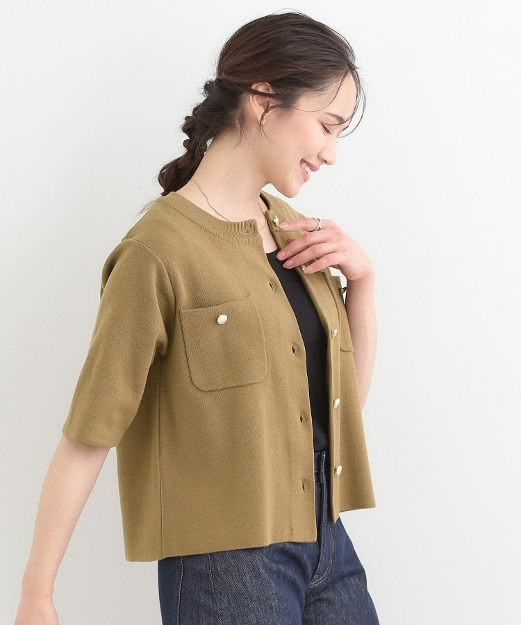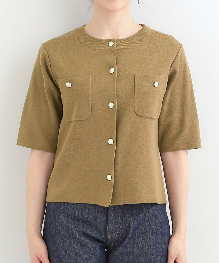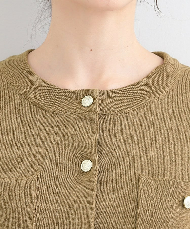 金ボタンが目を惹く、ハーフ袖のカーディガンニット。