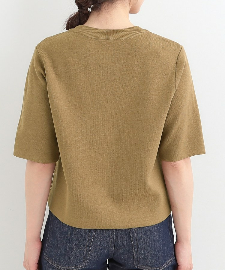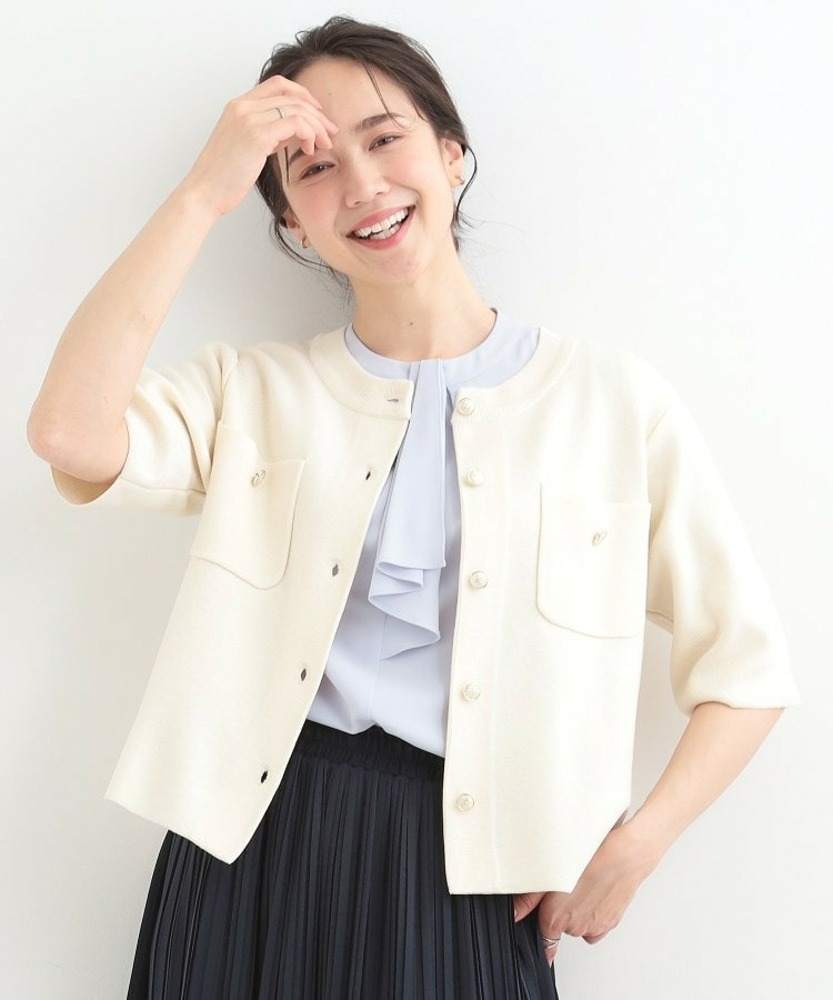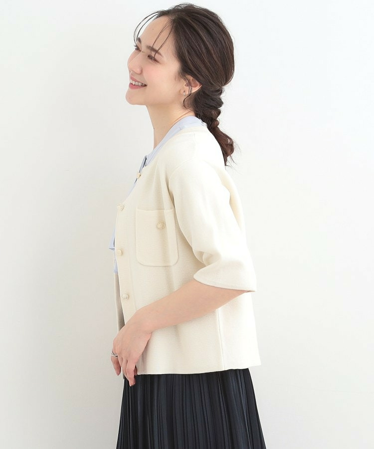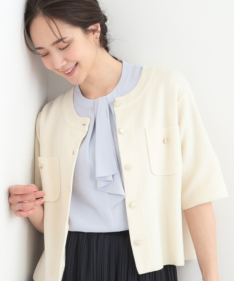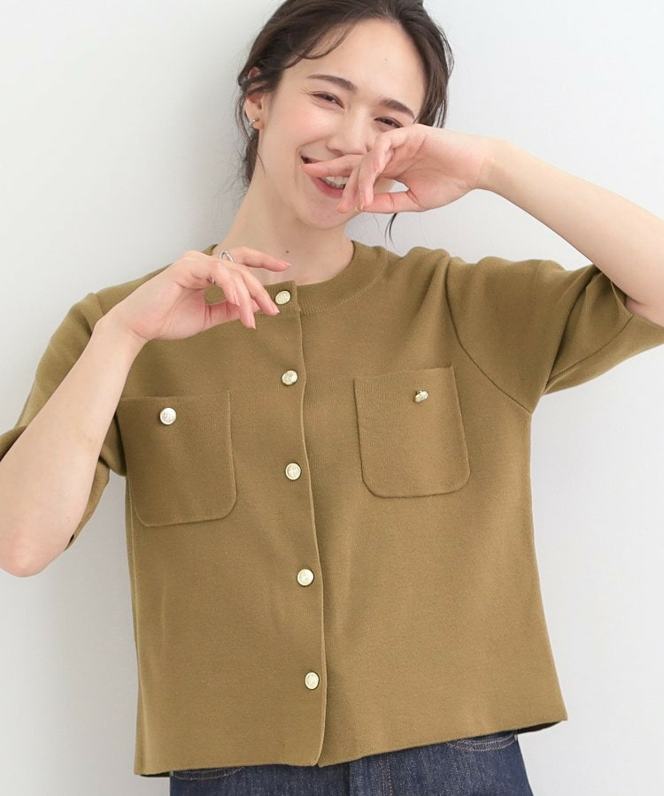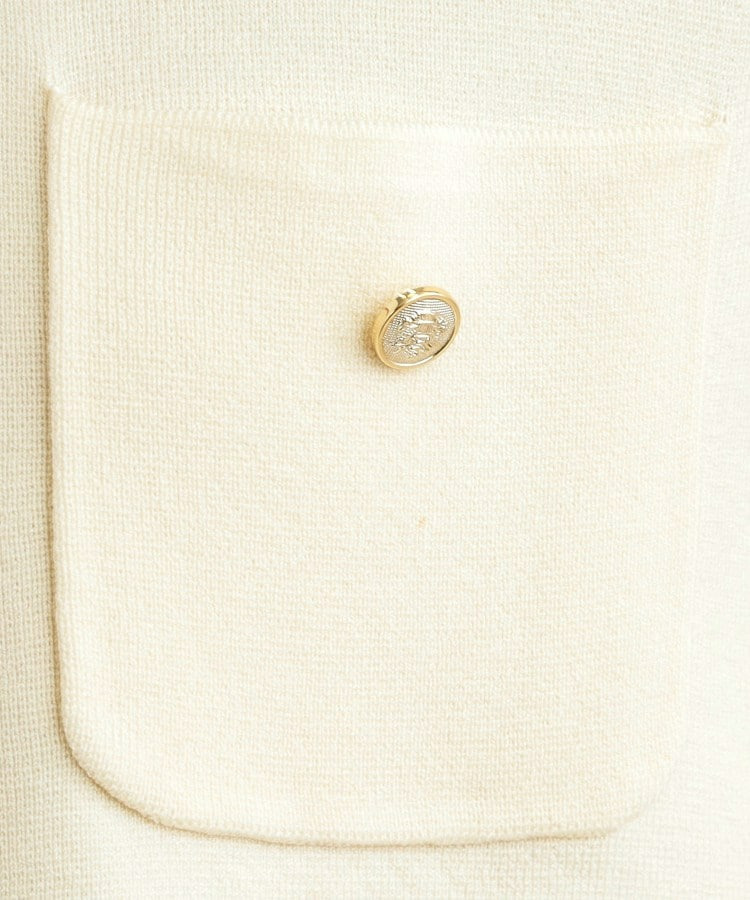 金ボタンが目を惹く、ハーフ袖のカーディガンニット。