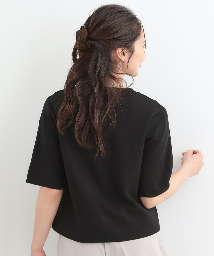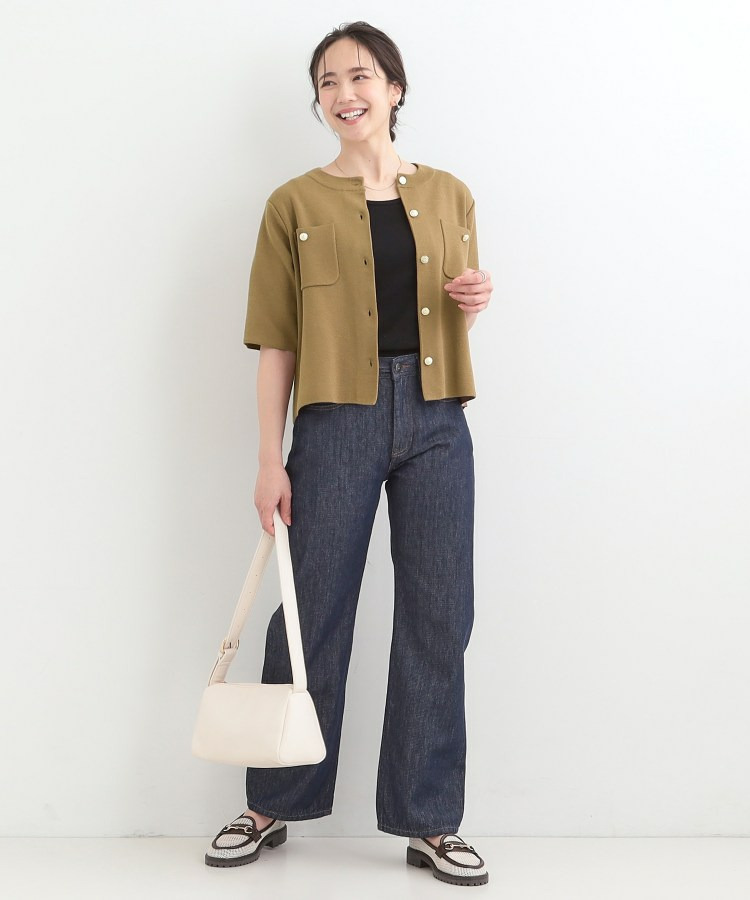 着丈が短めなのでインしなくても決まりやすく、ワイドパンツと合わせるとこなれ感のあるスタイルになります。