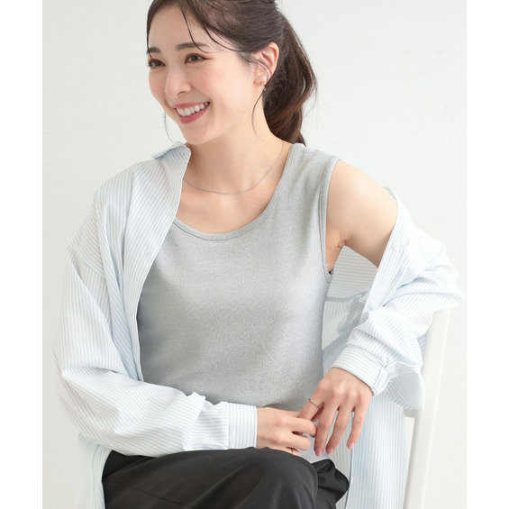 きらきらとした表面感が特徴のタンクトップ。