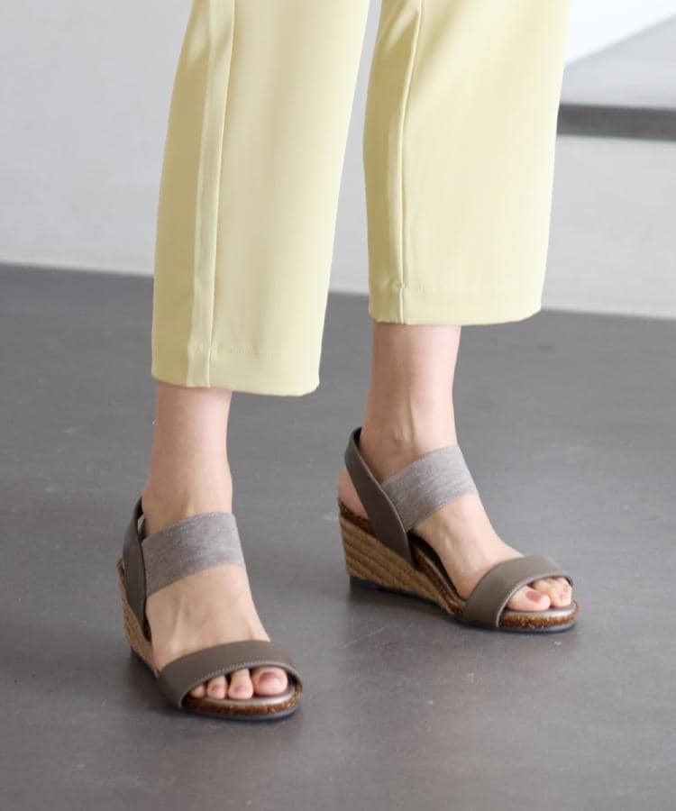 【安定感】ウェッジソールなのでヒールがあっても高さを感じにくく安定感あり。さらに滑りにくいアウトソールです。