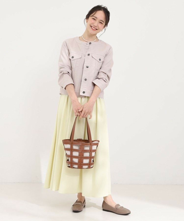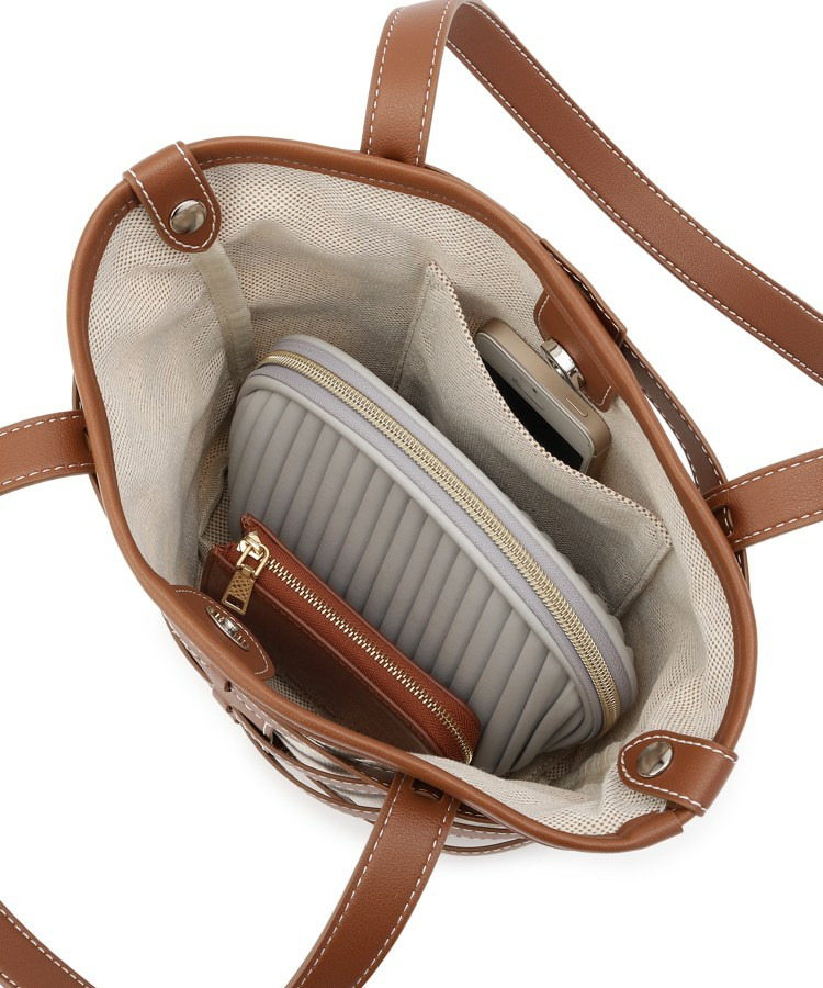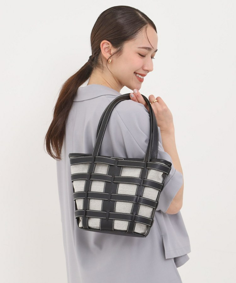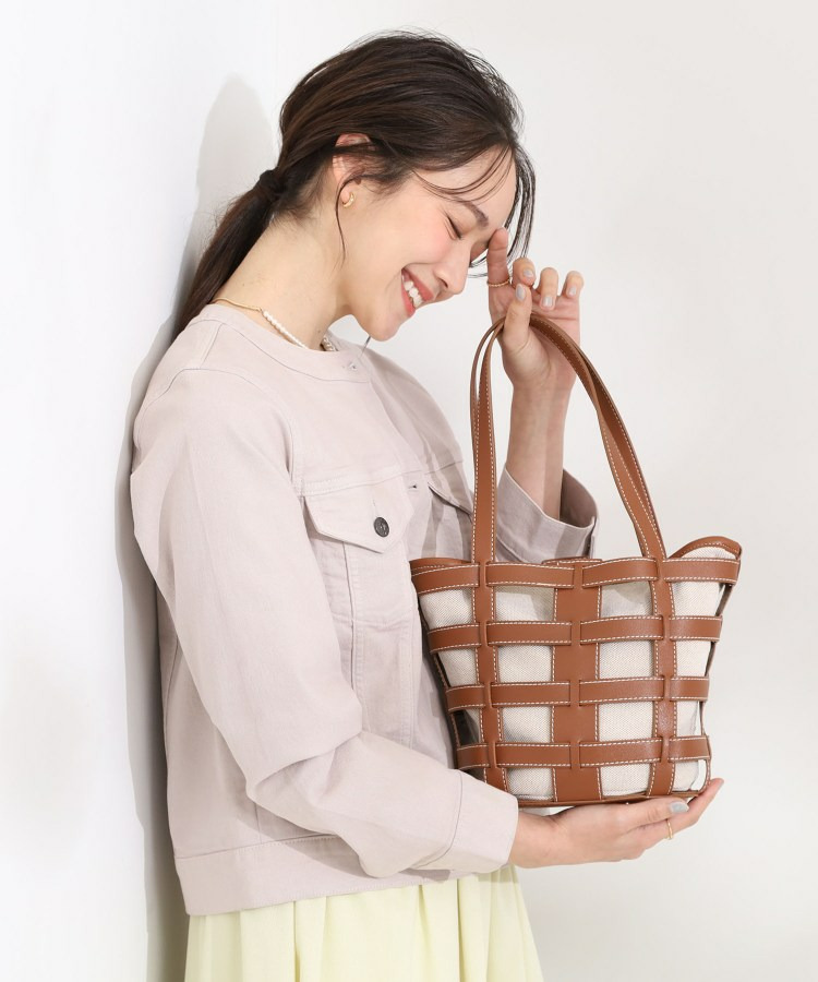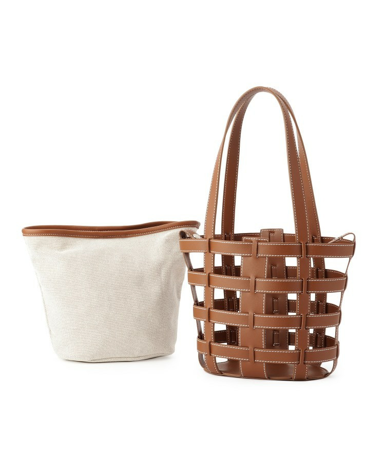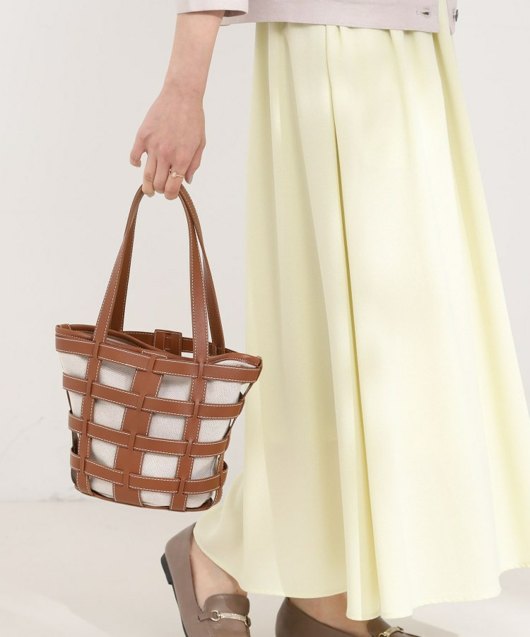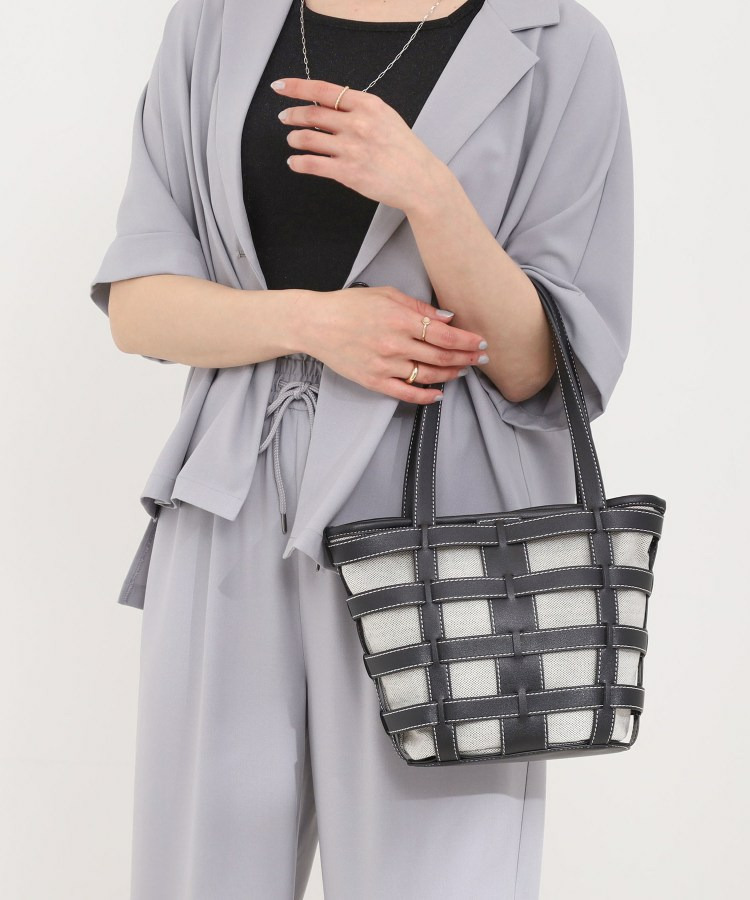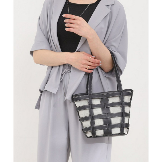 格子状のフレームが目を引く、軽やかな印象のレイヤードトートです。