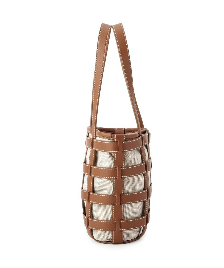 バケツに近いシルエットで、キャンバスの生地との組み合わせで格子フレームのコントラストがポイントです。