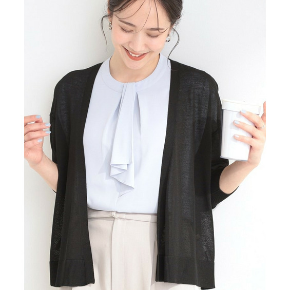 半袖やノースリーブのブラウスの上や、ワンピースにサッと羽織ればオフィスカジュアルに。