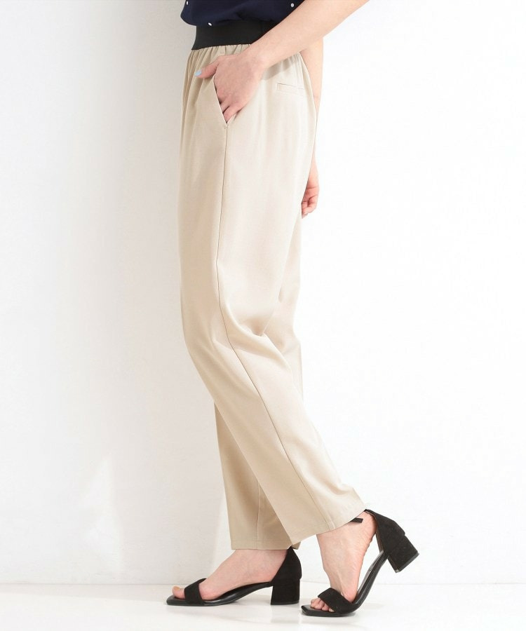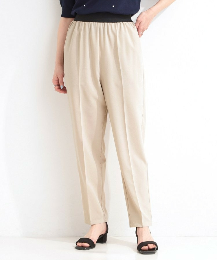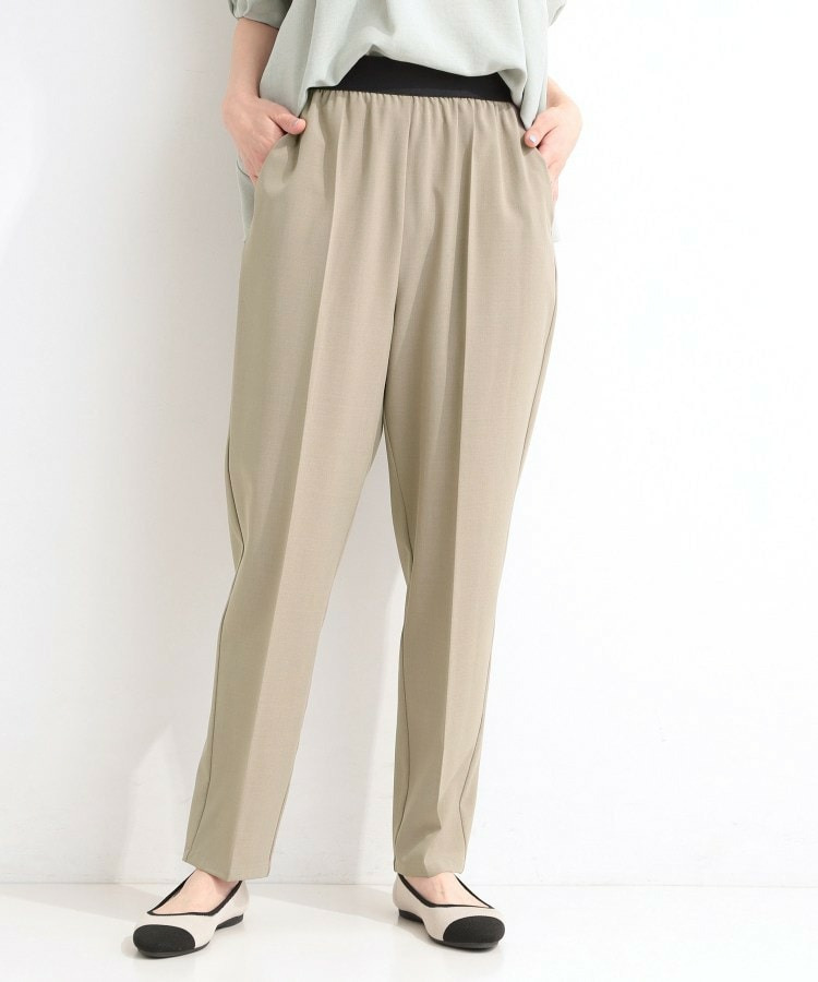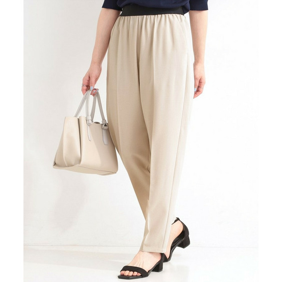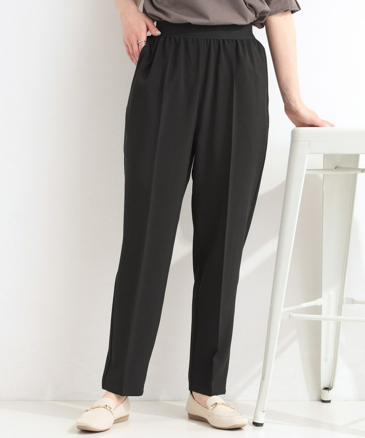 【ひんやり/UV/洗濯後しわになりにくい】楽なのにキレイ見え ウエストゴムテーパードパンツ