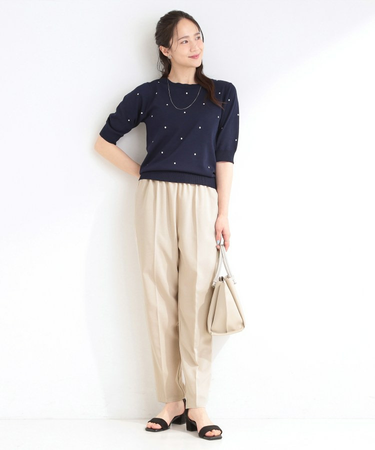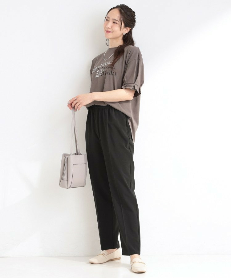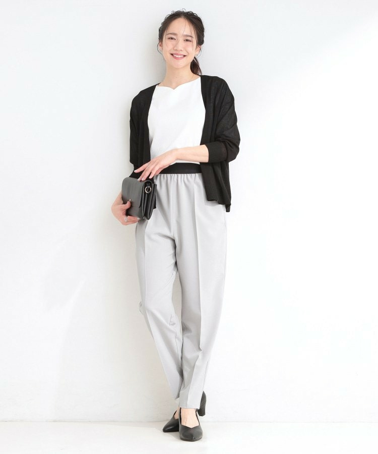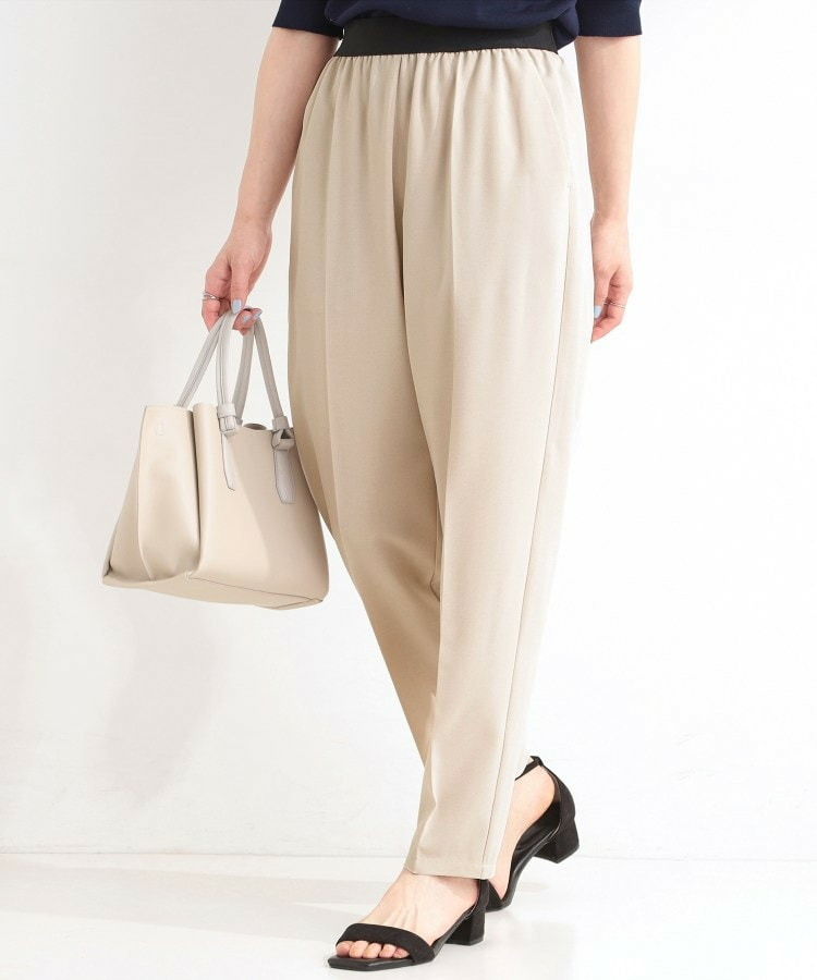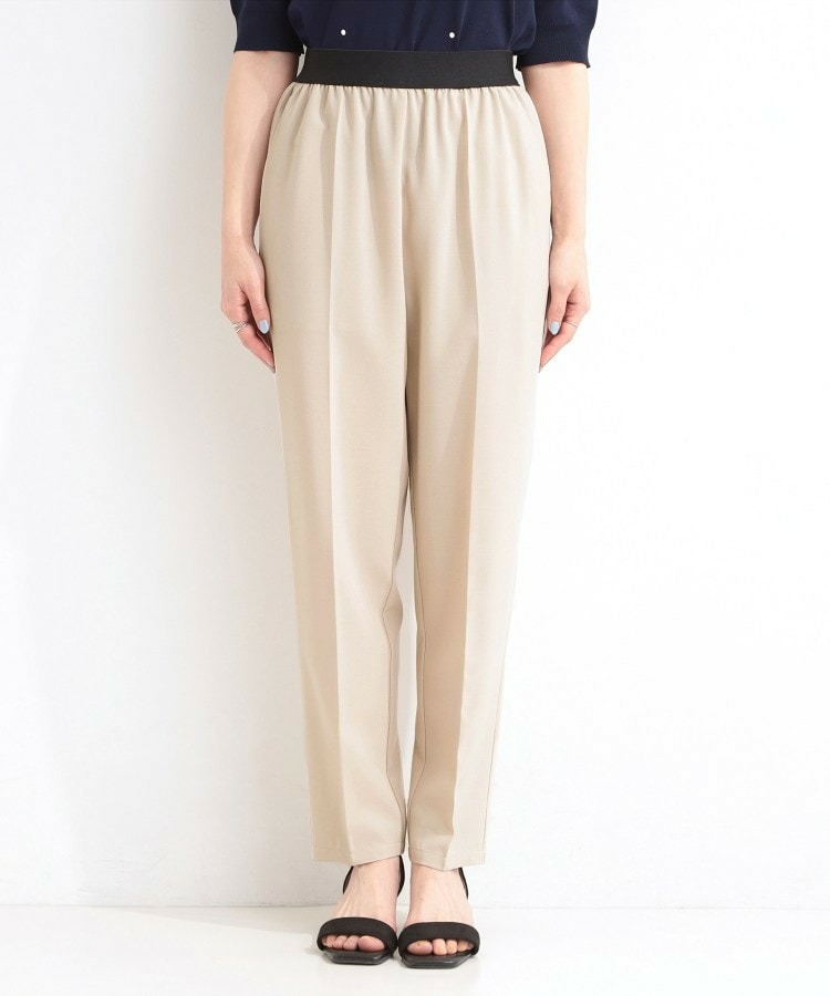【ひんやり/UV/洗濯後しわになりにくい】楽なのにキレイ見え ウエストゴムテーパードパンツ