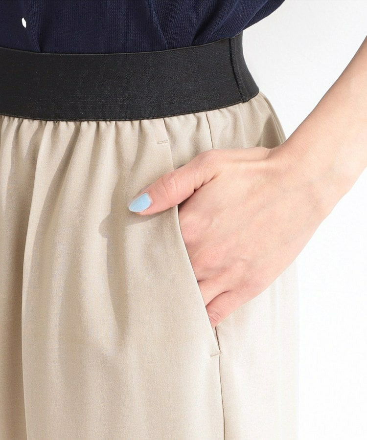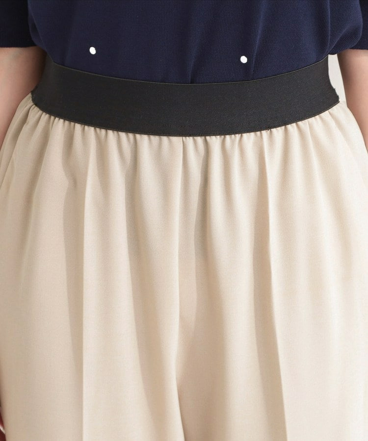 ウエストはフラットな平ゴム仕様なので、締め付け感が少なく、お腹まわりをすっきり見せながら快適に穿いていただけます。