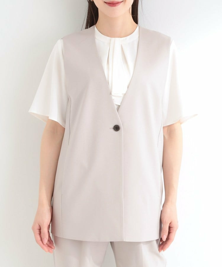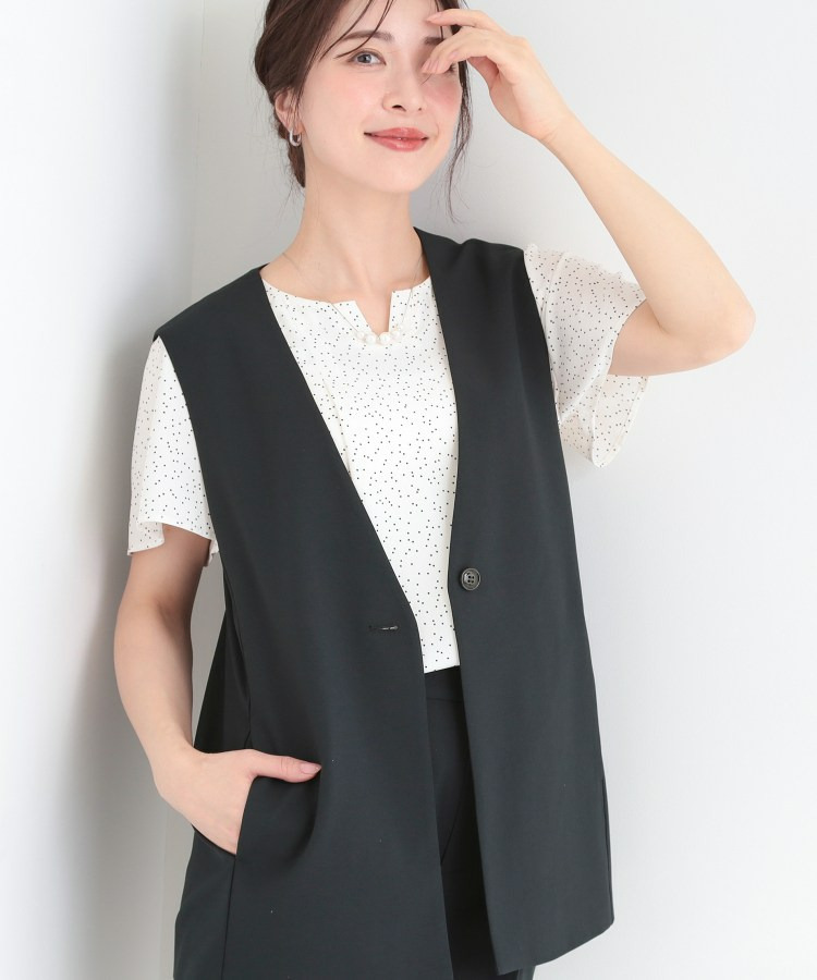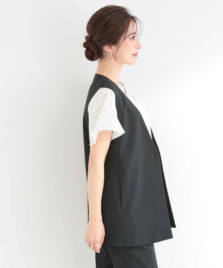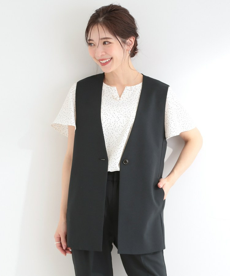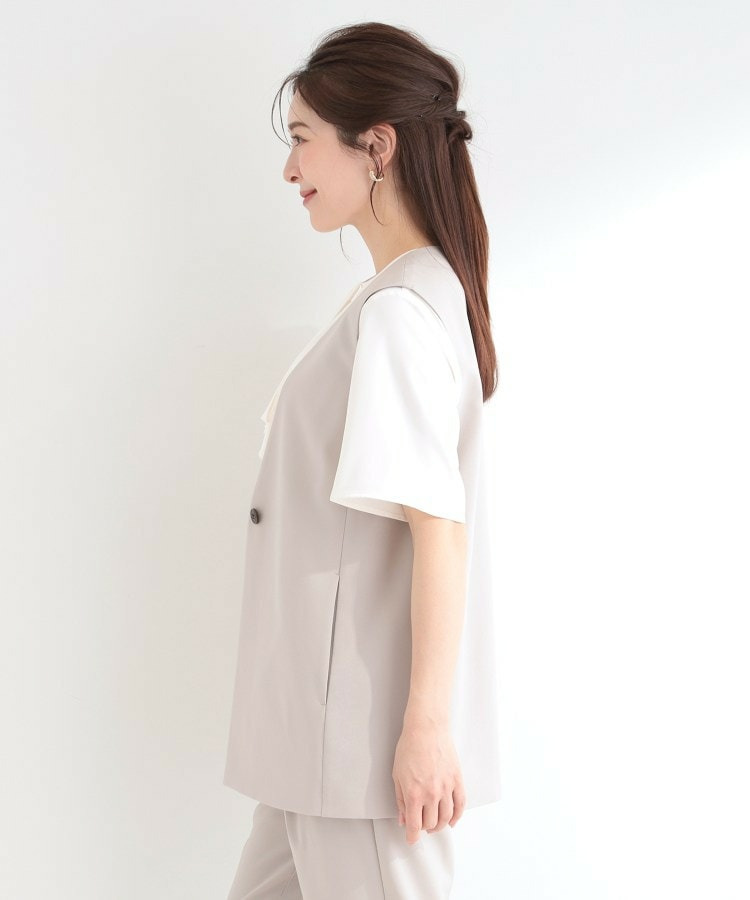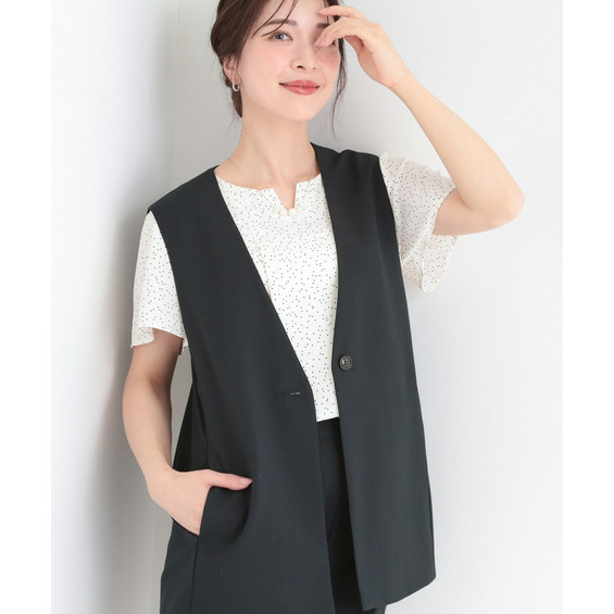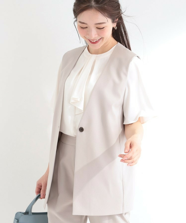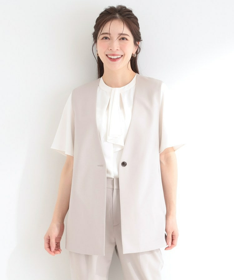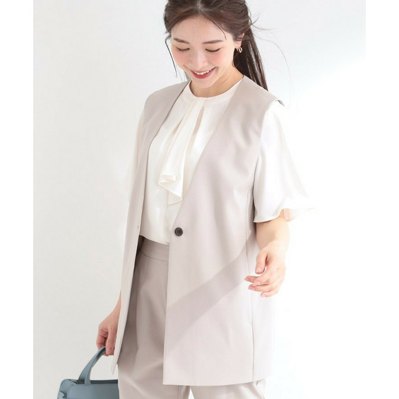 【セットアップ可/洗濯後しわになりにくい/S-LL】シンプルで合わせやすい ノーカラージレ
